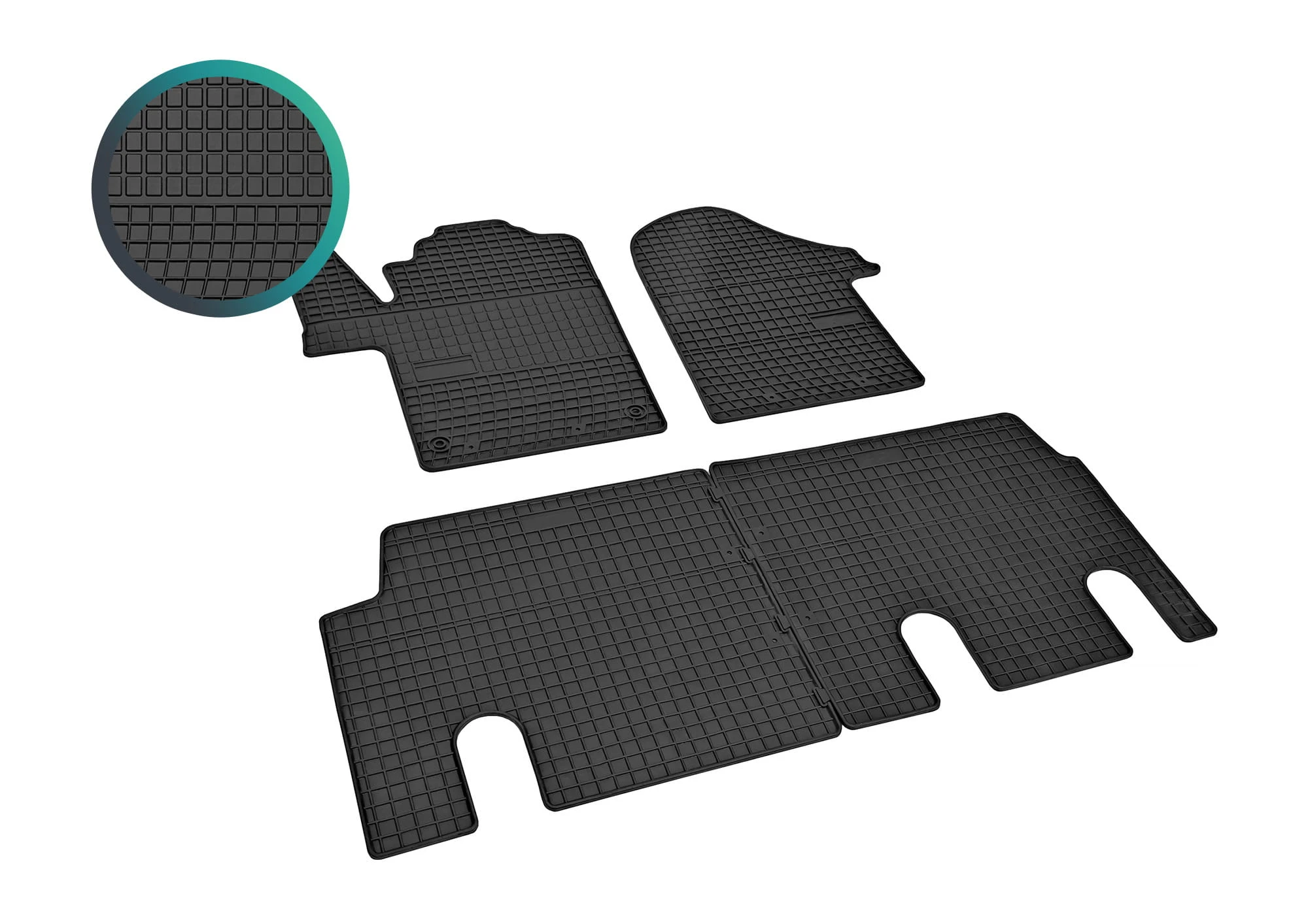 Zestaw zawiera: 4 pojedyncze dywaniki gumowe - kolor czarny