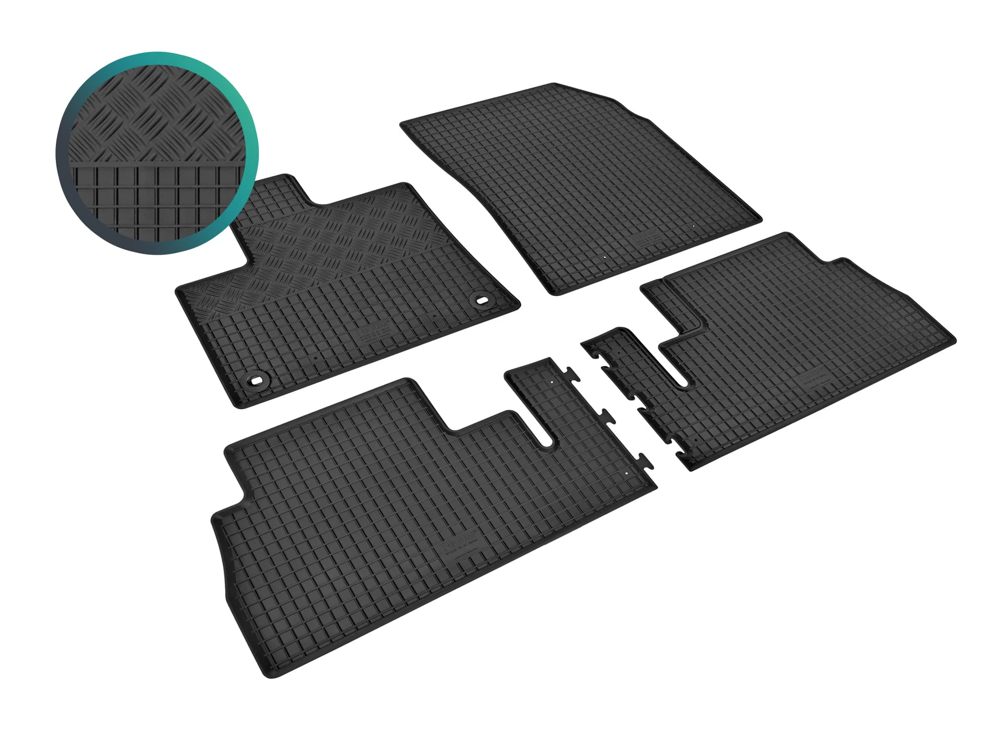Zestaw zawiera: 4 pojedyncze dywaniki gumowe - kolor czarny
