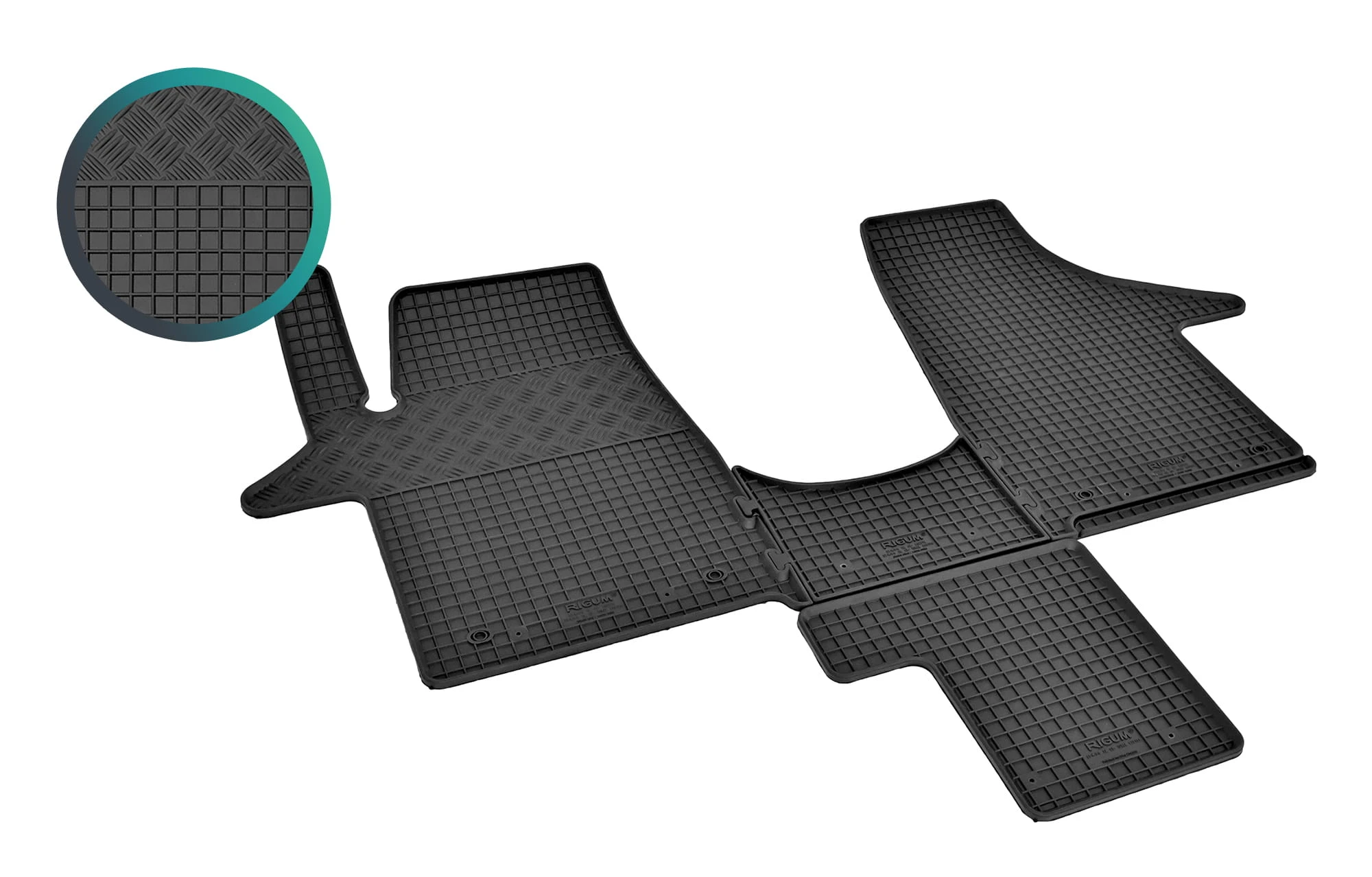 Dywaniki gumowe do Volkswagen T6 Transporter/Caravelle od 2015 do 2019 | 2 miejsca + TUNEL