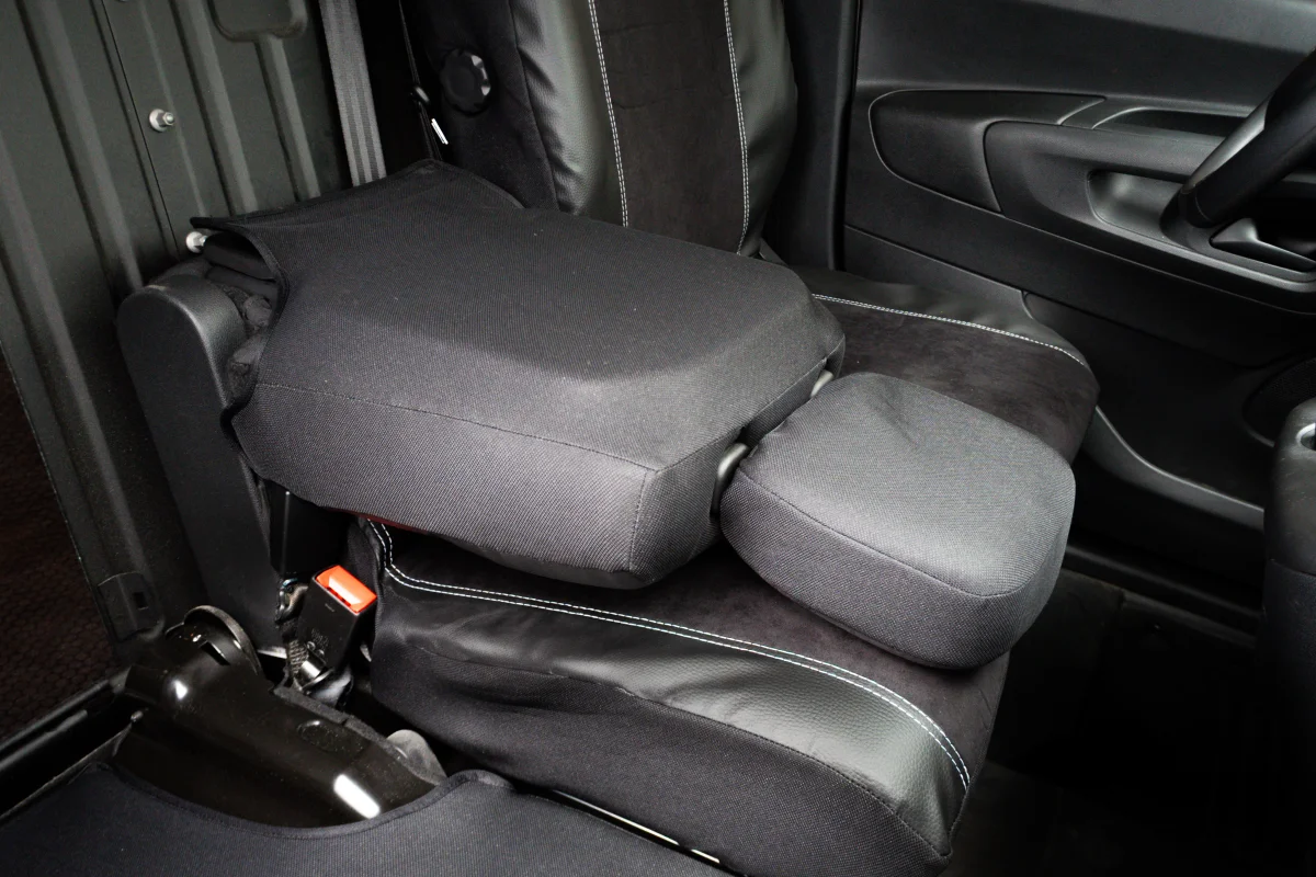 - Zachowana funkcjonalność: Pokrowce nie blokują mechanizmu podnoszenia siedzisk pasażera, umożliwiając swobodny dostęp do przestrzeni bagażowej pod fotelem.