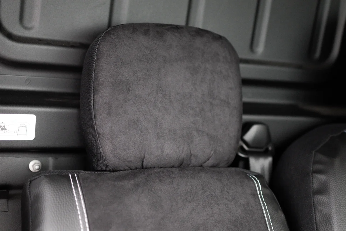 - Ekskluzywny design: Białe przeszycia i zamszowe wykończenie odmienią wnętrze Twojego vana.