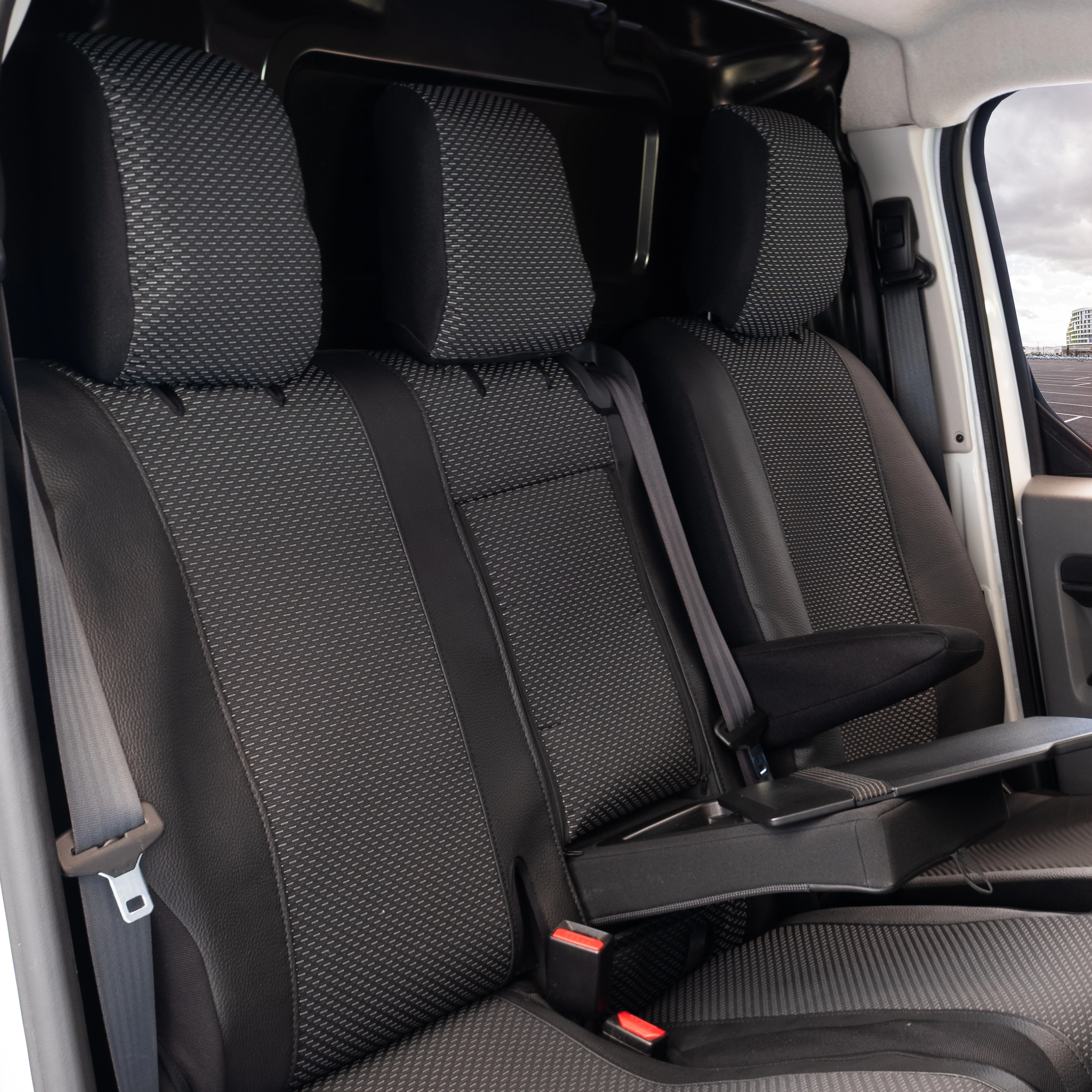 Odśwież wnętrze swojego vana i zapewnij mu ochronę na najwyższym poziomie dzięki dedykowanym pokrowcom z serii VIVA. Zaprojektowane z myślą o intensywnie użytkowanych samochodach dostawczych, łączą nowoczesny styl "targowy" z bezkompromisową trwałością. Unikalne zestawienie czarnej eco skóry na bokach oraz wytrzymałej szarej tkaniny w części centralnej sprawia, że kabina wygląda profesjonalnie i estetycznie.
