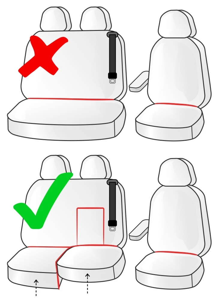 - Pełna funkcjonalność: Pokrowiec pasażera posiada dedykowane wycięcia na składany stolik w oparciu oraz jest w pełni przystosowany do wersji z dwoma podnoszonymi sekcjami siedziska.