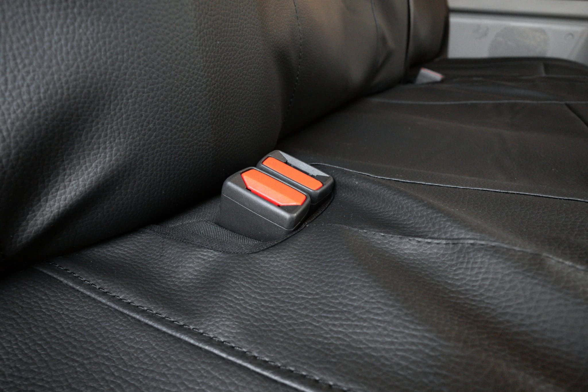- System ISOFIX: Pokrowiec posiada precyzyjne przygotowane punkty dostępu do dwóch mocowań ISOFIX znajdujących się na skrajnych siedziskach.