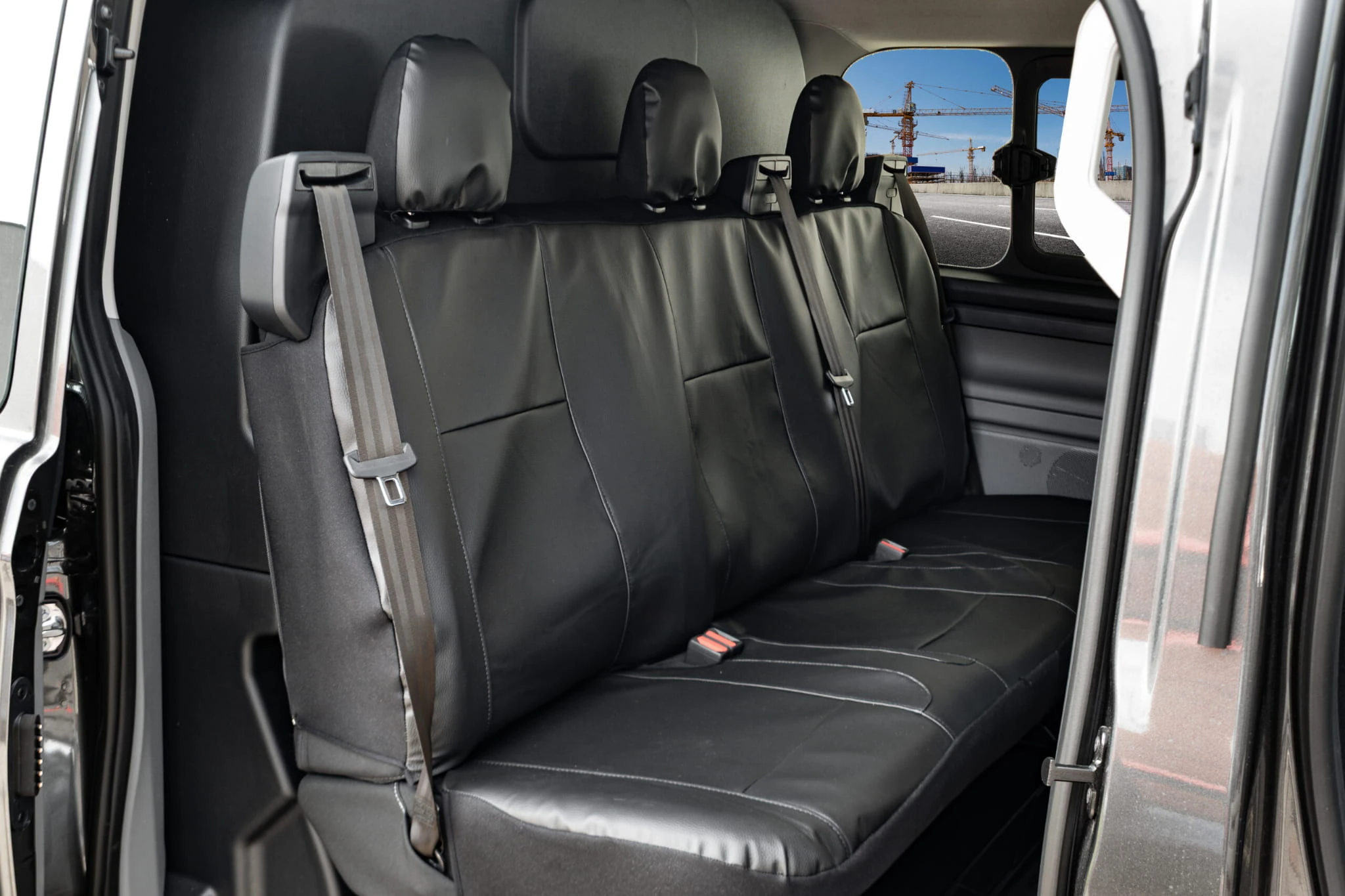 Zabezpiecz przestrzeń pasażerską swojego vana z linią MAISTER – produktem stworzonym dla profesjonalistów, którzy stawiają na maksymalną praktyczność. Pokrowce te zostały zaprojektowane specjalnie dla drugiego rzędu siedzeń modelu Ford Transit Custom II (od 2024 r.) w wersji Double Cab (Podwójna Kabina). Wykonane w całości z wysokiej jakości czarnej ekoskóry, stanowią idealne rozwiązanie dla ekip budowlanych, serwisowych i transportowych.
