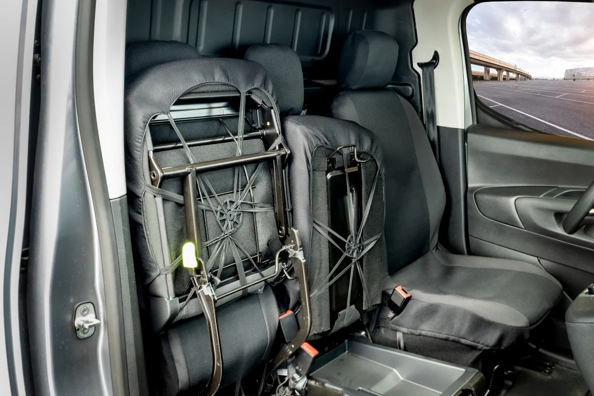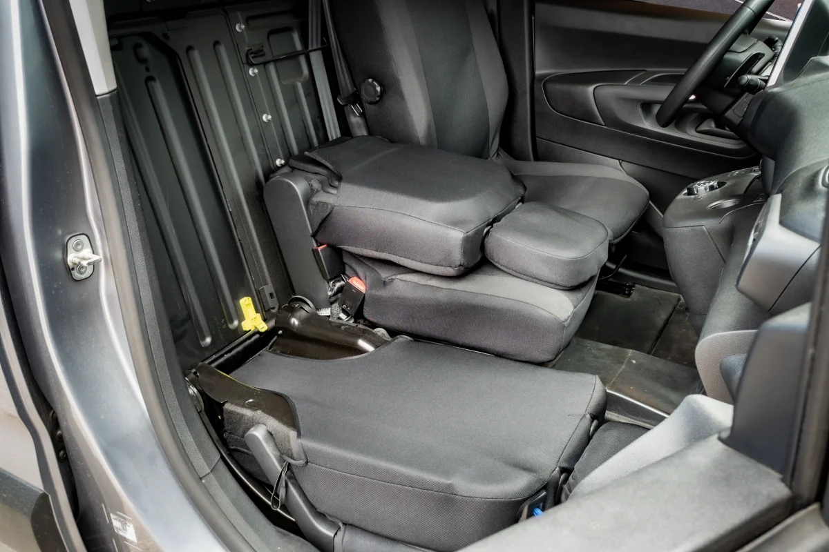 - Pełna mobilność: Specjalna budowa osłony podwójnego fotela pasażera nie blokuje mechanizmu podnoszenia siedzisk.