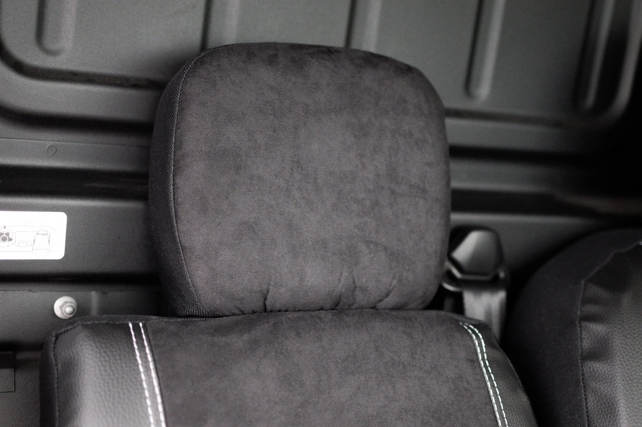Podnieś standard swojego vana dzięki luksusowym pokrowcom z serii KING. Wyjątkowe połączenie czarnej eco skóry na bokach oraz szarego, oddychającego zamszu z eleganckimi białymi przeszyciami nadaje wnętrzu nowoczesny, sportowy charakter.