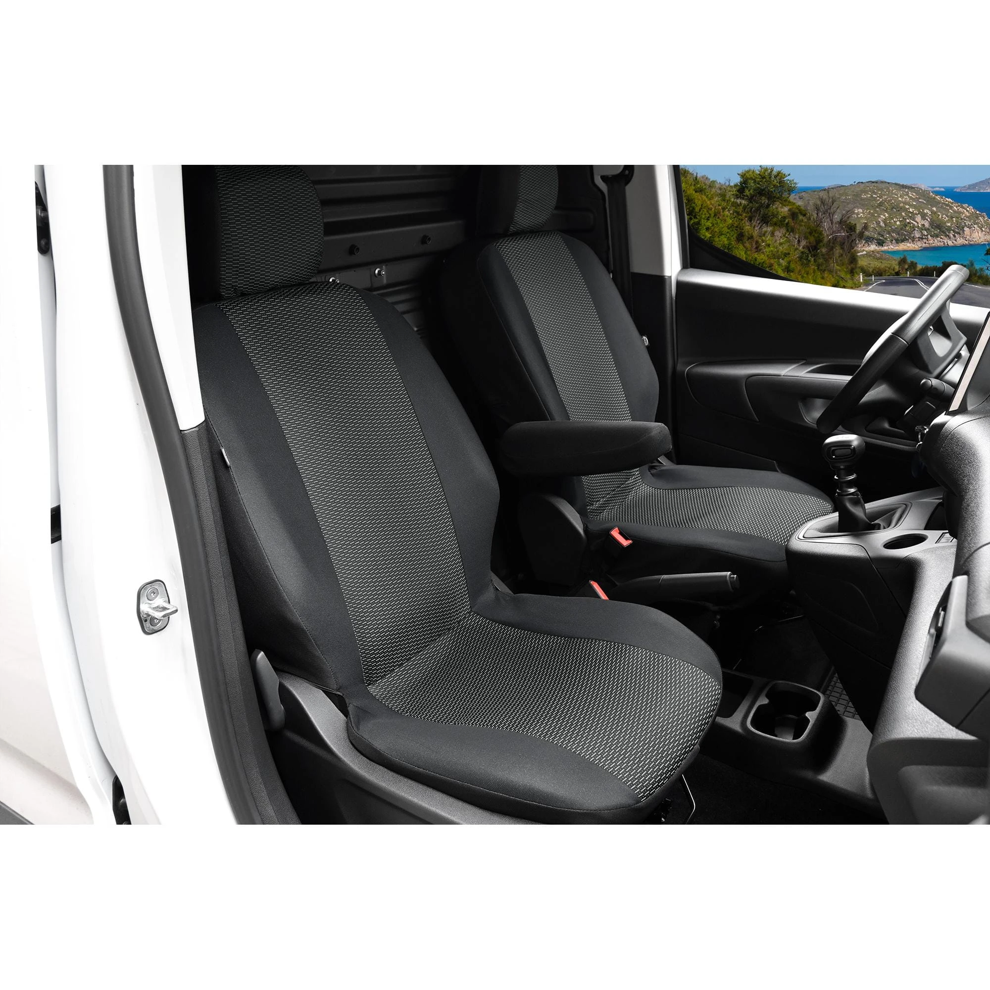 - Łatwa konserwacja – materiał odporny na plamy, kurz i zabrudzenia typowe dla aut użytkowych.