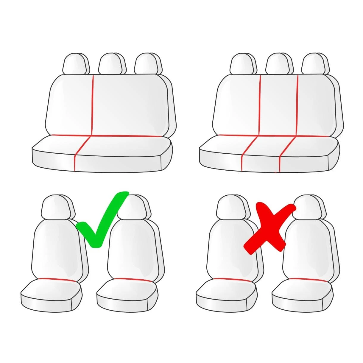 - Wzmocniony spód zapobiegający przesuwaniu się pokrowców na siedzeniach.