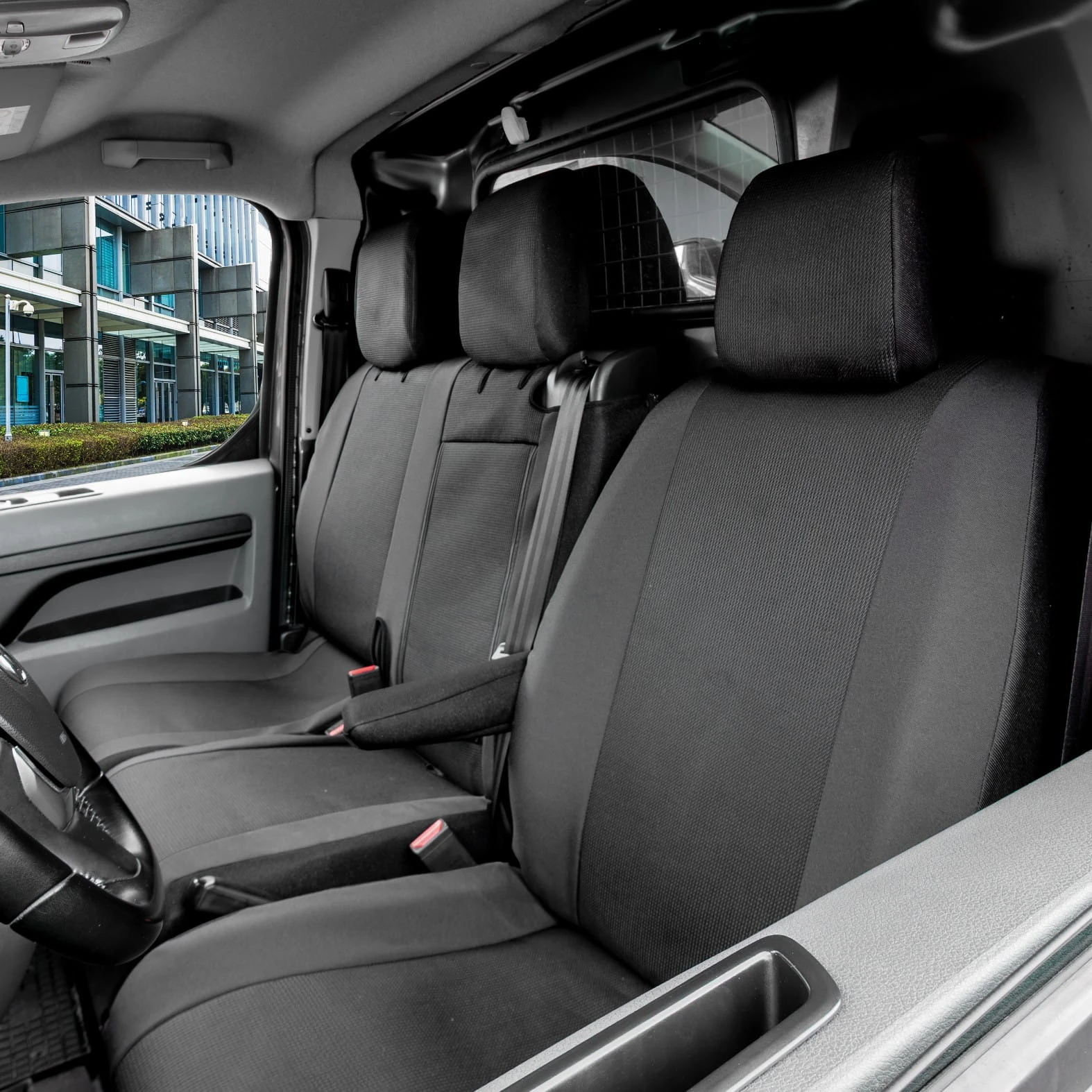 Pokrowce na siedzenia SCHWARZ do Fiat Scudo / Ulysse III od 2022 - Przód 3 miejsca ZE STOLIKIEM