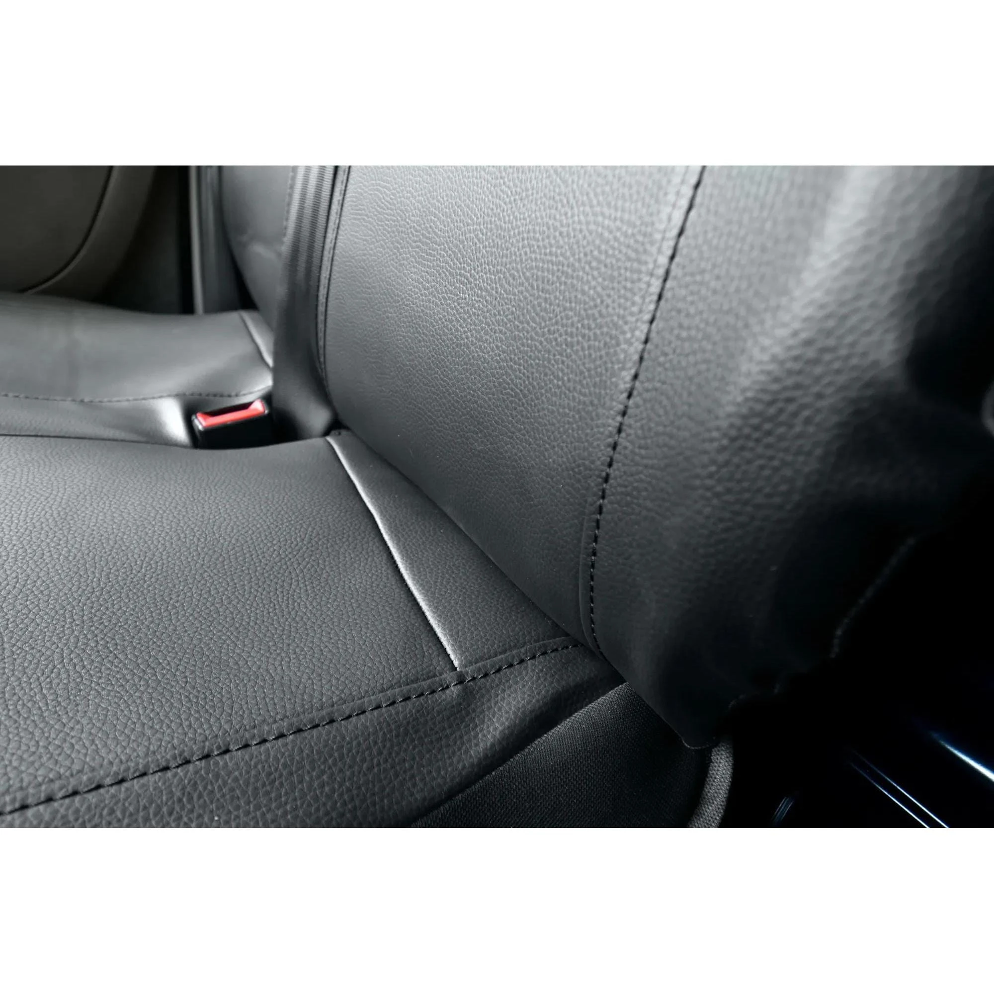 Pokrowce MAISTER wykonane są z wysokogatunkowej, czarnej ekoskóry. Materiał ten charakteryzuje się pełną wodoodpornością i jest niezwykle łatwy w czyszczeniu – większość zabrudzeń wystarczy przetrzeć wilgotną szmatką. Specjalnie wzmocniony spód oraz precyzyjne dopasowanie sprawiają, że pokrowce stabilnie przylegają do foteli, eliminując problem zsuwania się materiału.