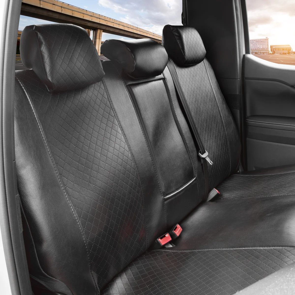 - Pełna ochrona: Pokrowce całkowicie zabudowują tył oparć, chroniąc je przed zabrudzeniami i uszkodzeniami mechanicznymi.