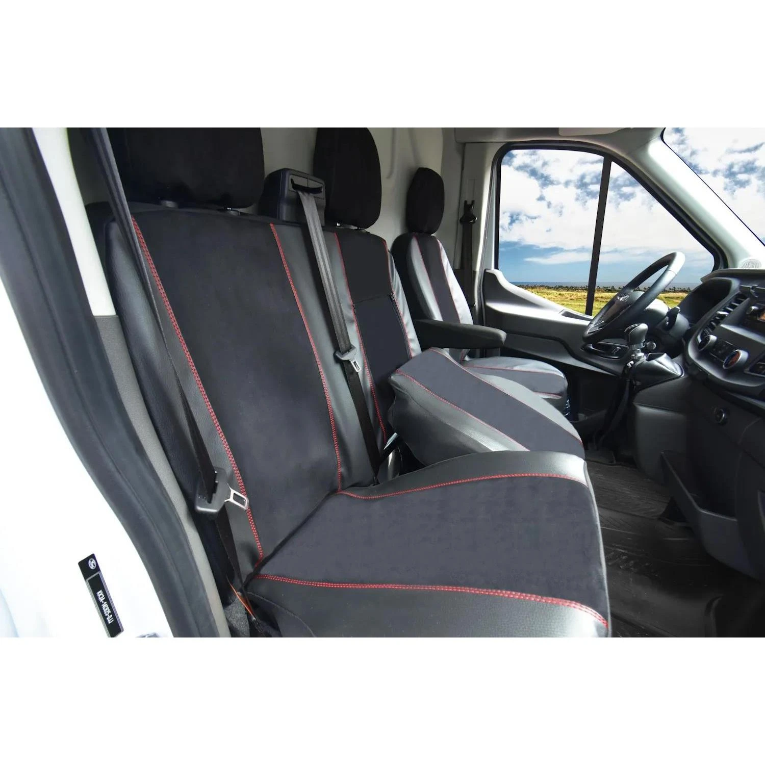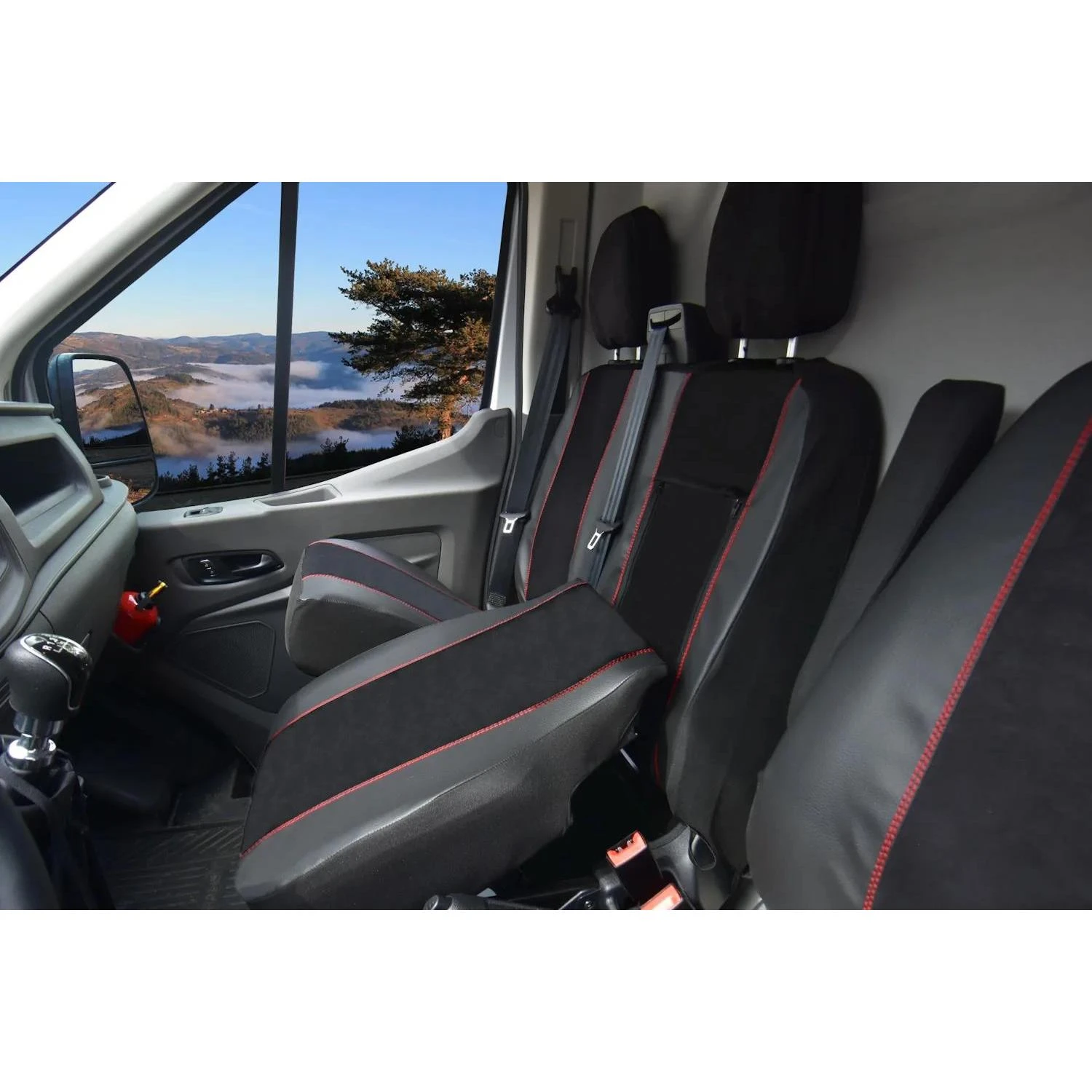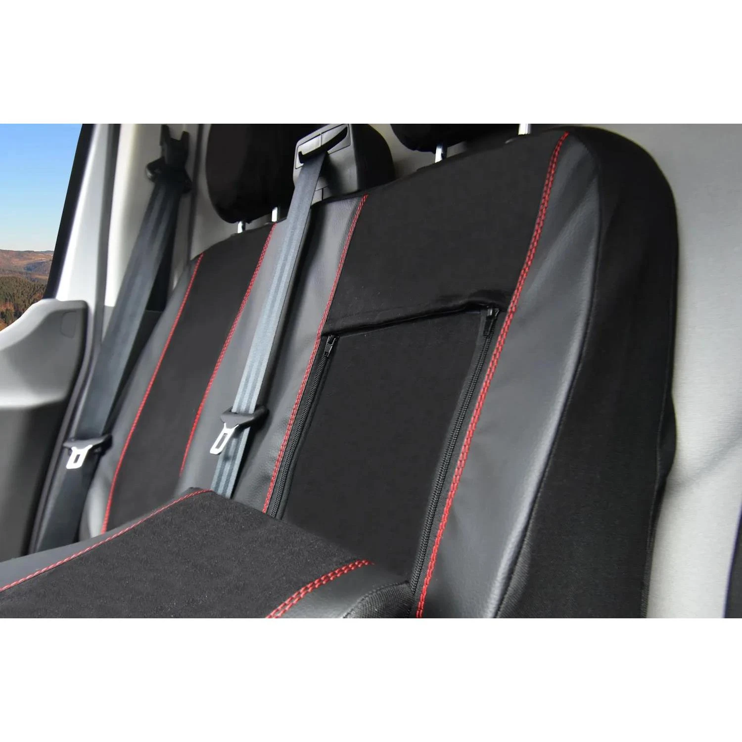 Linia KING to synonim luksusu i nowoczesnego designu w segmencie pojazdów dostawczych. Ten dedykowany zestaw pokrowców został zaprojektowany specjalnie dla przedniego rzędu siedzeń modelu Ford Tourneo Custom I po faceliftingu (2018–2023) w układzie 1+2. Połączenie czarnej ekoskóry na bokach z szarym zamszem w części środkowej oraz efektownymi czerwonymi przeszyciami nadaje wnętrzu sportowy, prestiżowy charakter.