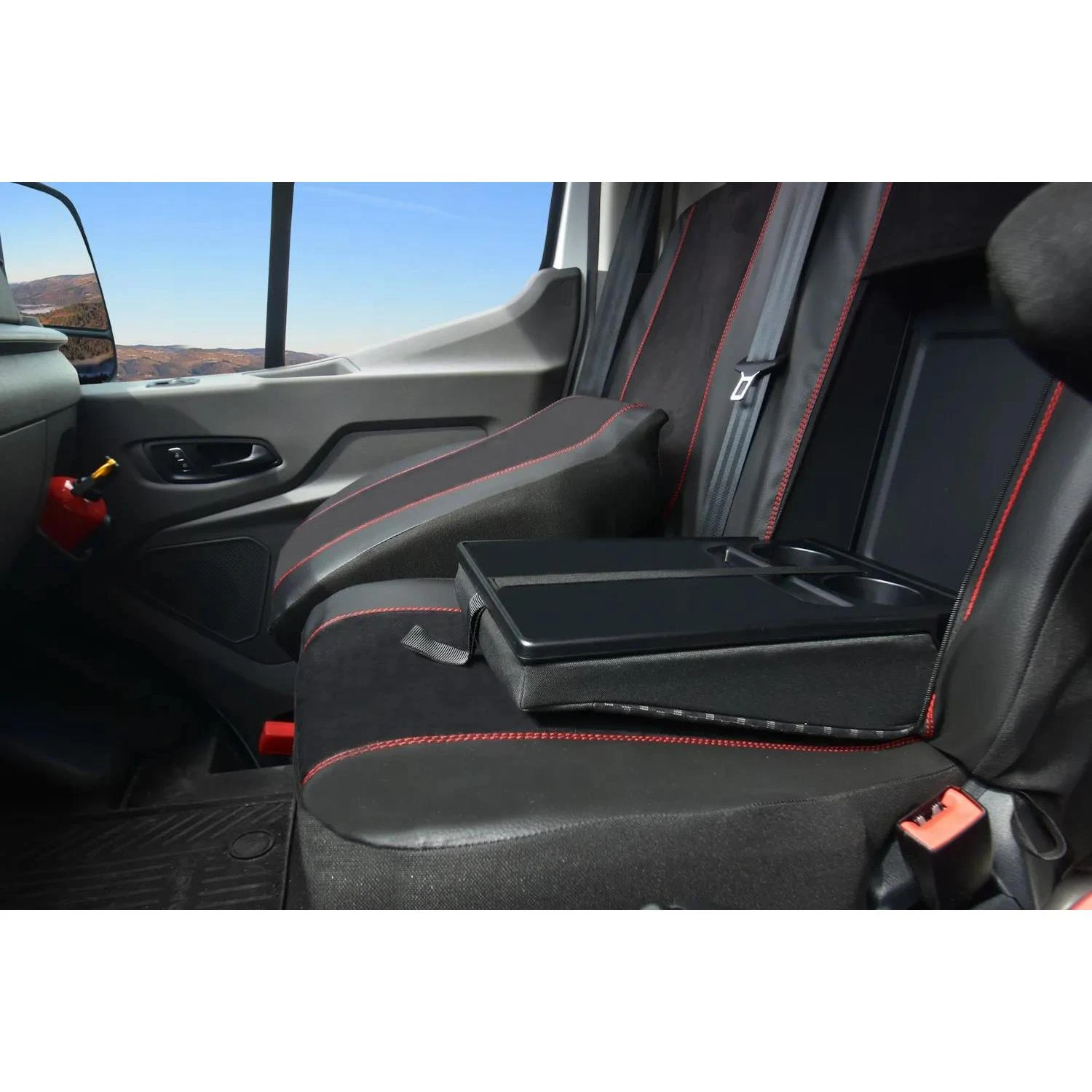 - Unikalny Wygląd: Czerwone przeszycia i tekstura zamszu odmieniają wnętrze vana, nadając mu nowoczesny sznyt.