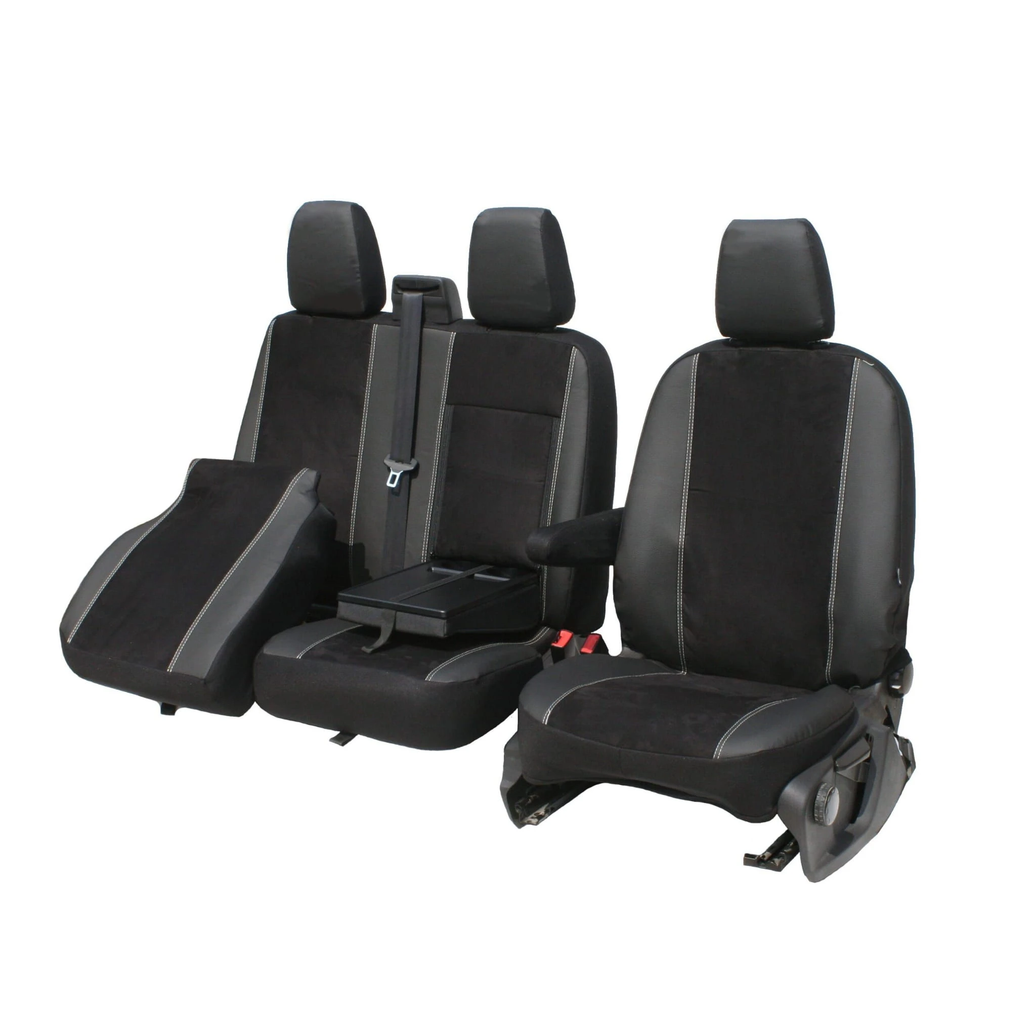 Pokrowce do Ford Tourneo Custom I od 2018 do 2023 - 3 miejsca CAŁE OPARCIE ZE STOLKIEKIEM, DZIELONE SIEDZENIE | Seria KING/PT9