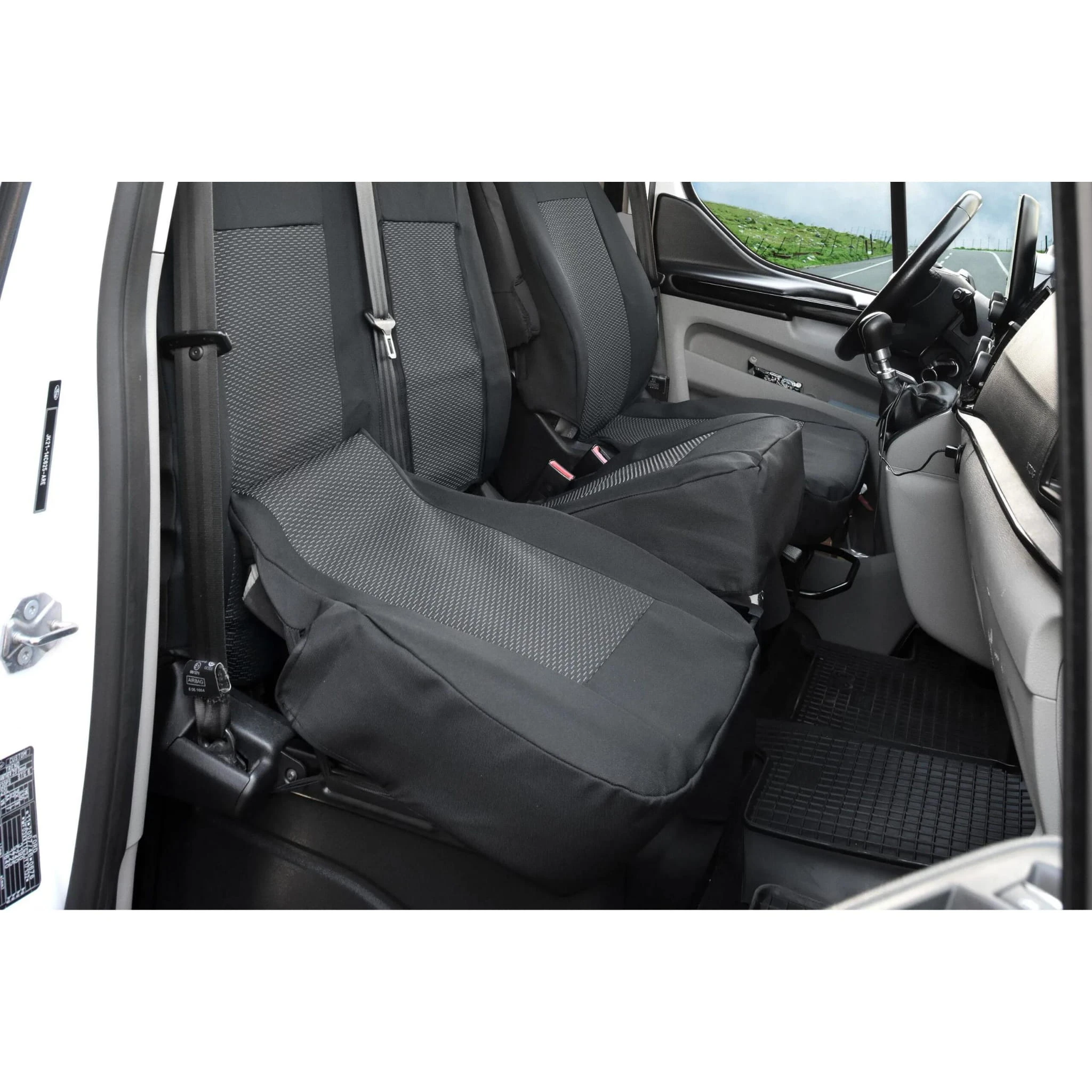Linia LUX to połączenie elegancji i wyjątkowej odporności, stworzone dla wymagających użytkowników pojazdów dostawczych i osobowych. Ten zestaw pokrowców został zaprojektowany specjalnie dla przedniego rzędu siedzeń modelu Ford Tourneo Custom I po faceliftingu (2018–2023) w układzie 1+2 (pojedynczy fotel kierowcy oraz podwójna kanapa pasażera). Zastosowanie żakardu w części środkowej zapewnia doskonały wygląd i trwałość wnętrza.