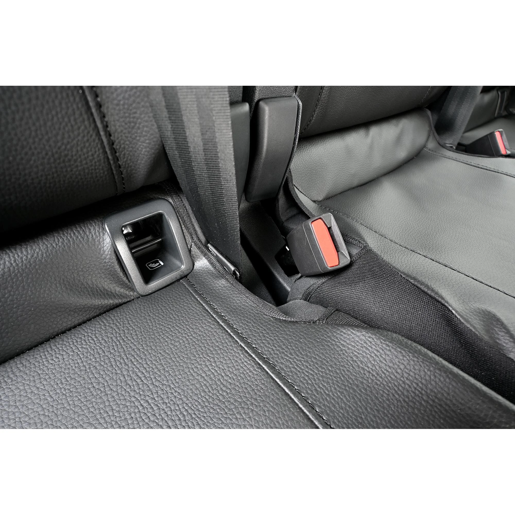 - Zintegrowane pasy: Każdy z trzech pokrowców na oparcie posiada specjalne otwory i konstrukcję umożliwiającą swobodne korzystanie z pasów bezpieczeństwa zamontowanych bezpośrednio w oparciach foteli.