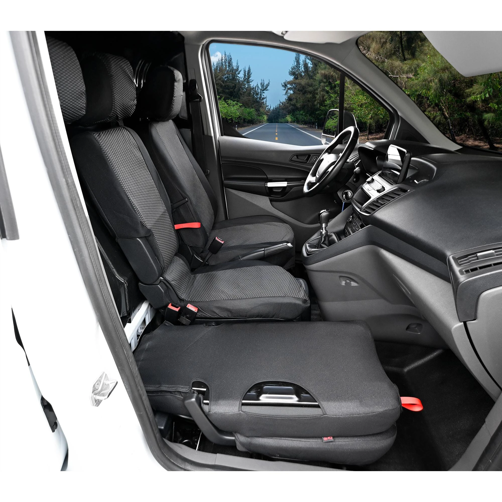 Pokrowce do Ford Transit Connect II od 2014 do 2022 - 3 miejsca SKŁADANE OPARCIE ZE STOLIKIEM, DZIELONE SIEDZISKO | Seria HERO