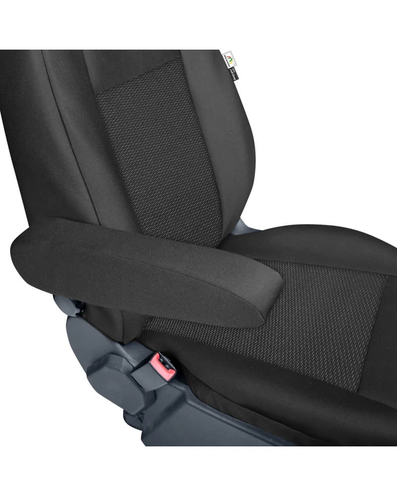 - 1x pokrowiec na fotel kierowcy (pokrowiec kierowcy przystosowany do podłokietnika zamontowanego w bocznej części oparcia)
