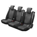 Odnów wnętrze swojego vana i zapewnij pasażerom najwyższy poziom komfortu dzięki serii HERO. Te pokrowce to idealne połączenie nowoczesnego stylu i bezkompromisowej trwałości, zaprojektowane specjalnie dla 3-osobowego układu w tylnych rzędach Forda Transita Custom. Środkowa część wykonana z oddychającego żakardu w zestawieniu z wytrzymałymi, wyściełanymi bokami skutecznie chroni oryginalną tapicerkę przed intensywnym zużyciem.