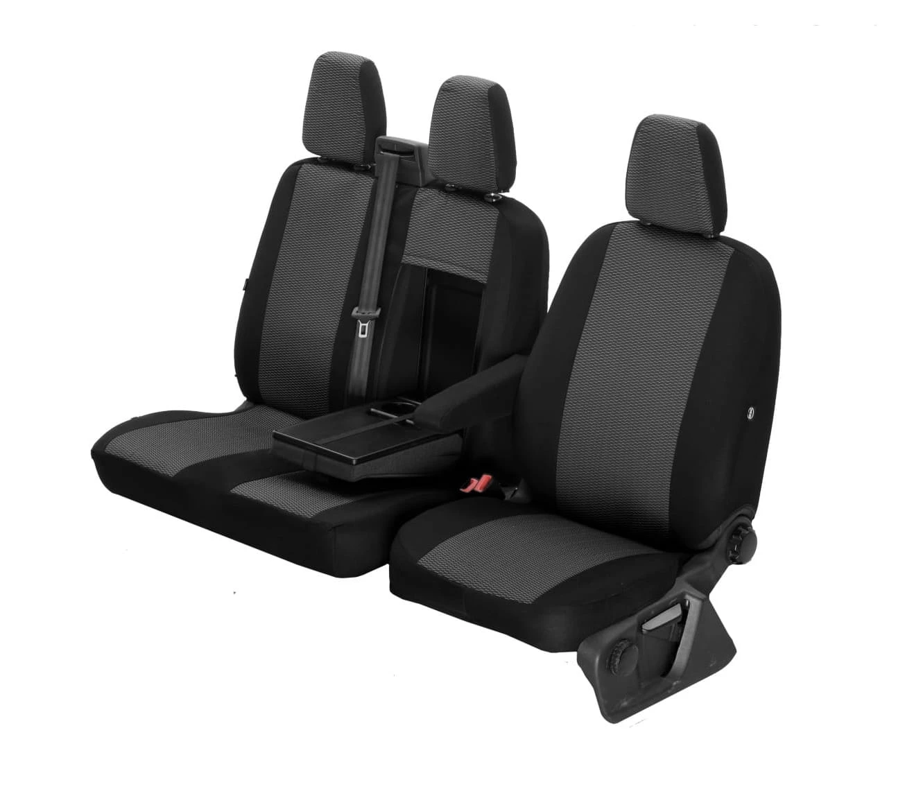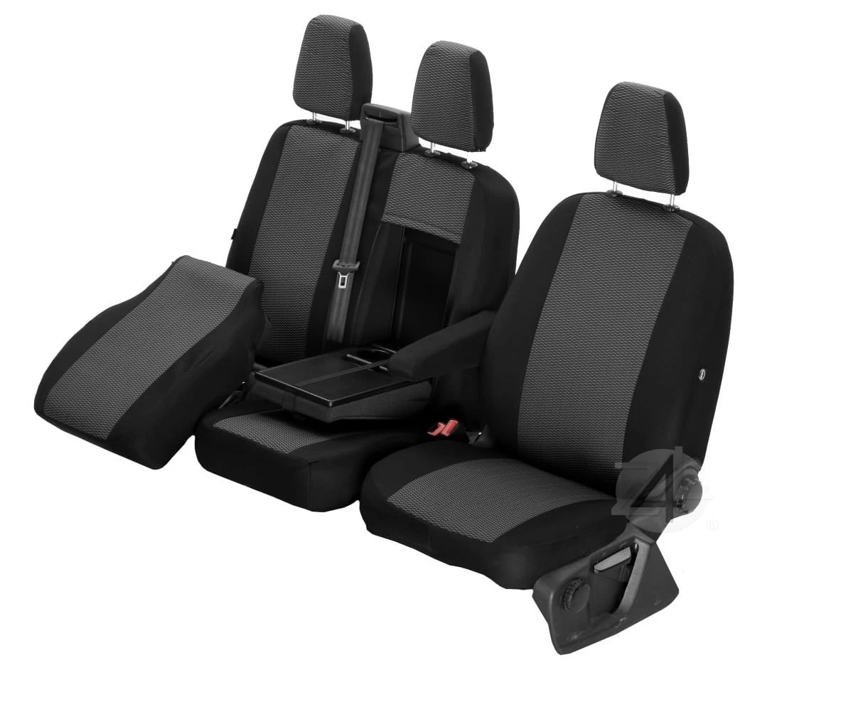 Pokrowce do Ford Transit Custom I od 2012 do 2023 - 6 miejsc PRZEDNIE SIEDZENIA CAŁE OPARCIE ZE STOLIKIEM I DZIELONE SIEDZENIE | Seria HERO