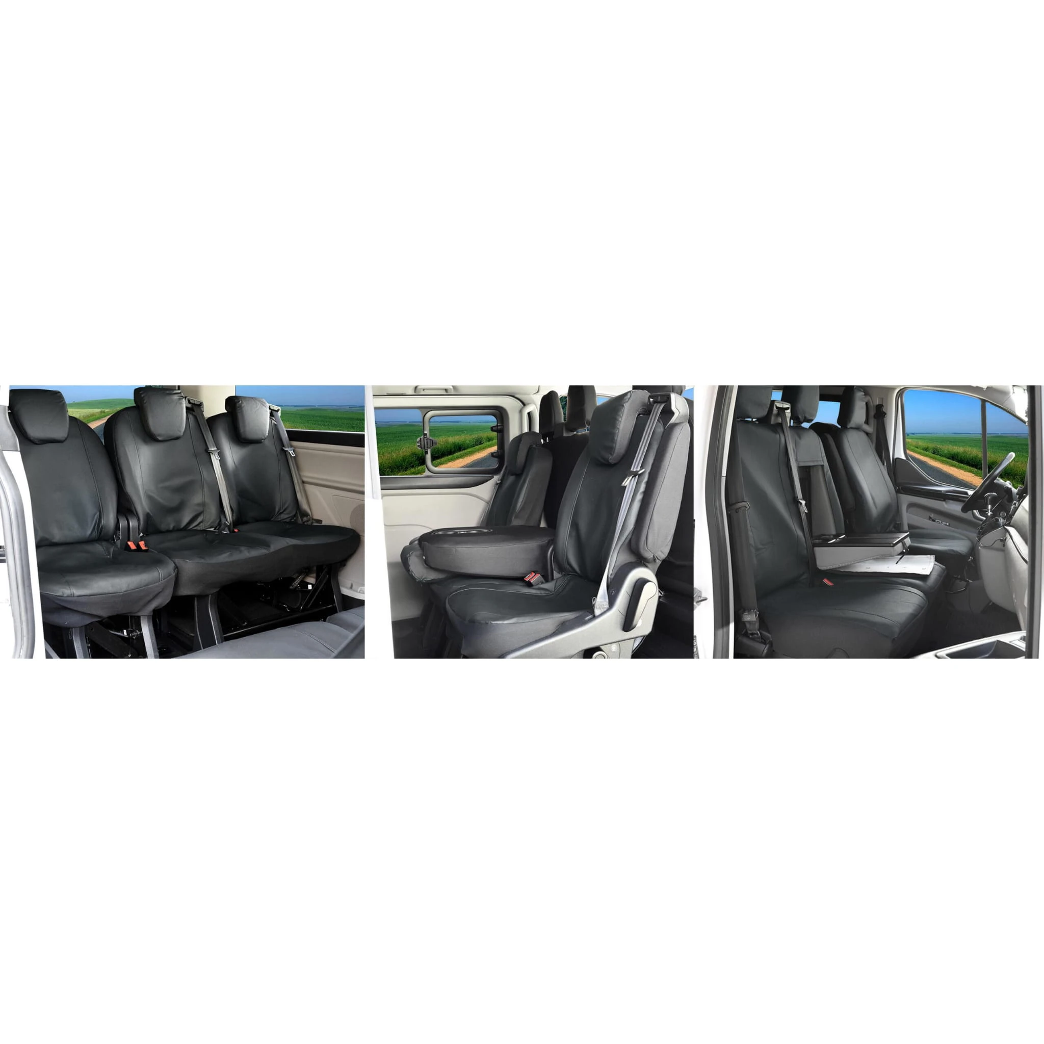 Pokrowce do Ford Transit Custom I od 2012 do 2023 - 9 miejsc PRZEDNIE FOTELE Z CAŁYM OPARCIEM Z STOLIKIEM I DZIELONYM SIEDZISKIEM| Seria VIP