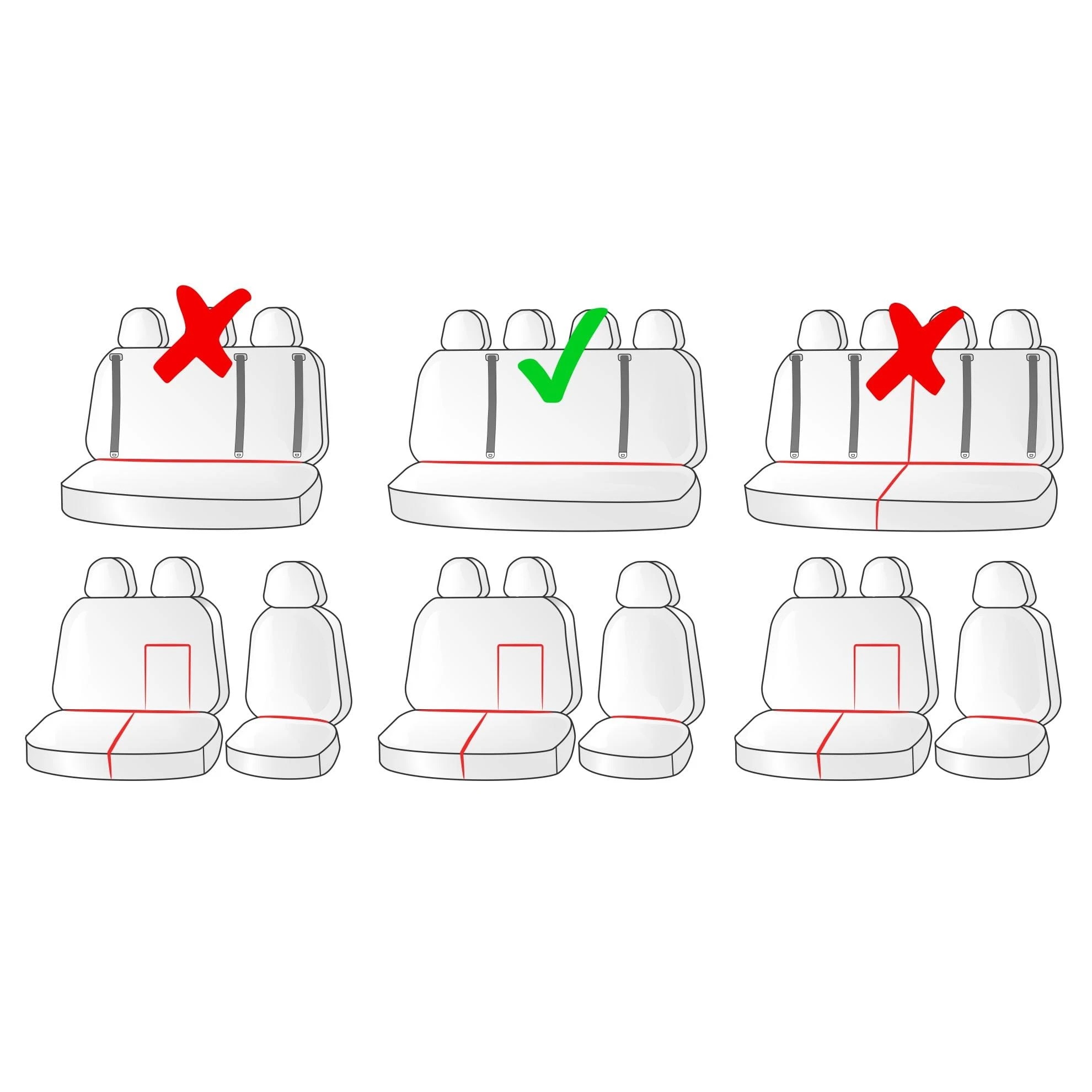 Uwaga: Produkt nie pasuje do modelu Ford Transit Custom. Prosimy o zwrócenie uwagi na umiejscowienie pasów bezpieczeństwa w drugim rzędzie – pokrowce pasują wyłącznie na całą (niepodzieloną) kanapę 4-osobową.