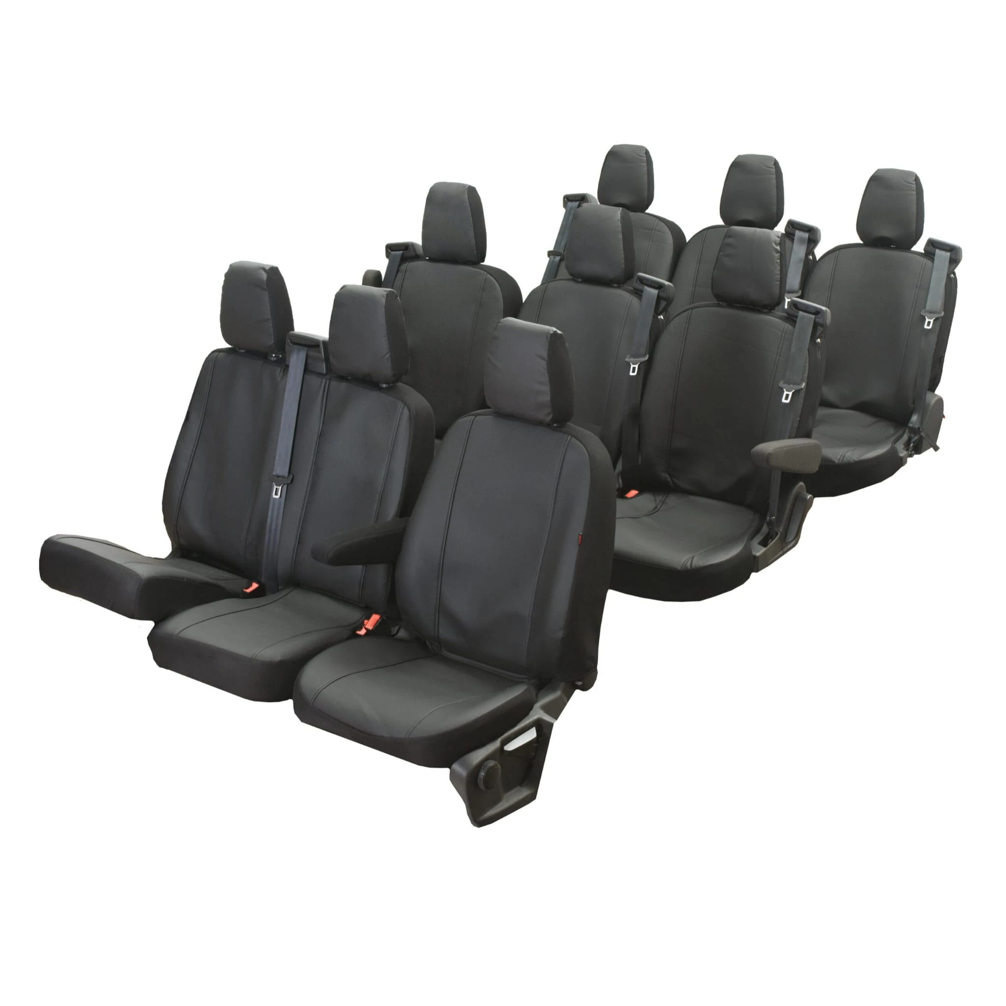 Pokrowce do Ford Transit VII, VIII od 2014 / od 2020 | 9 miejsc - W PIERWSZYM RZĘDZIE CAŁE OPARCIE ZE STOLIKIEM I DZIELONE SIEDZISKO | Seria VIP