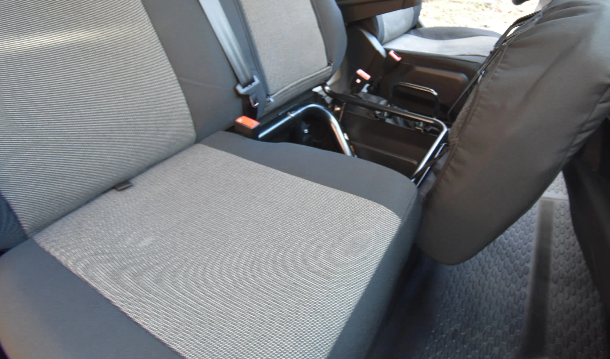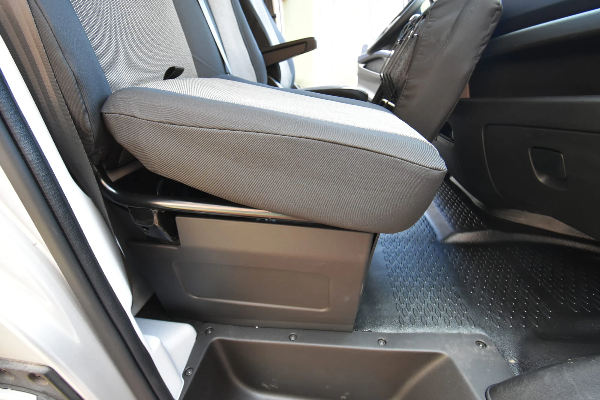 - Kanapa pasażera: Podwójne oparcie z przygotowanym dostępem do składanego stolika oraz siedzisko podzielone na dwie niezależne, podnoszone sekcje.