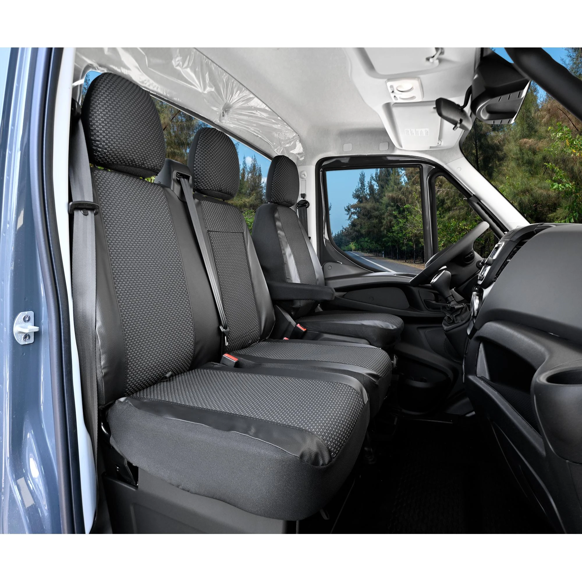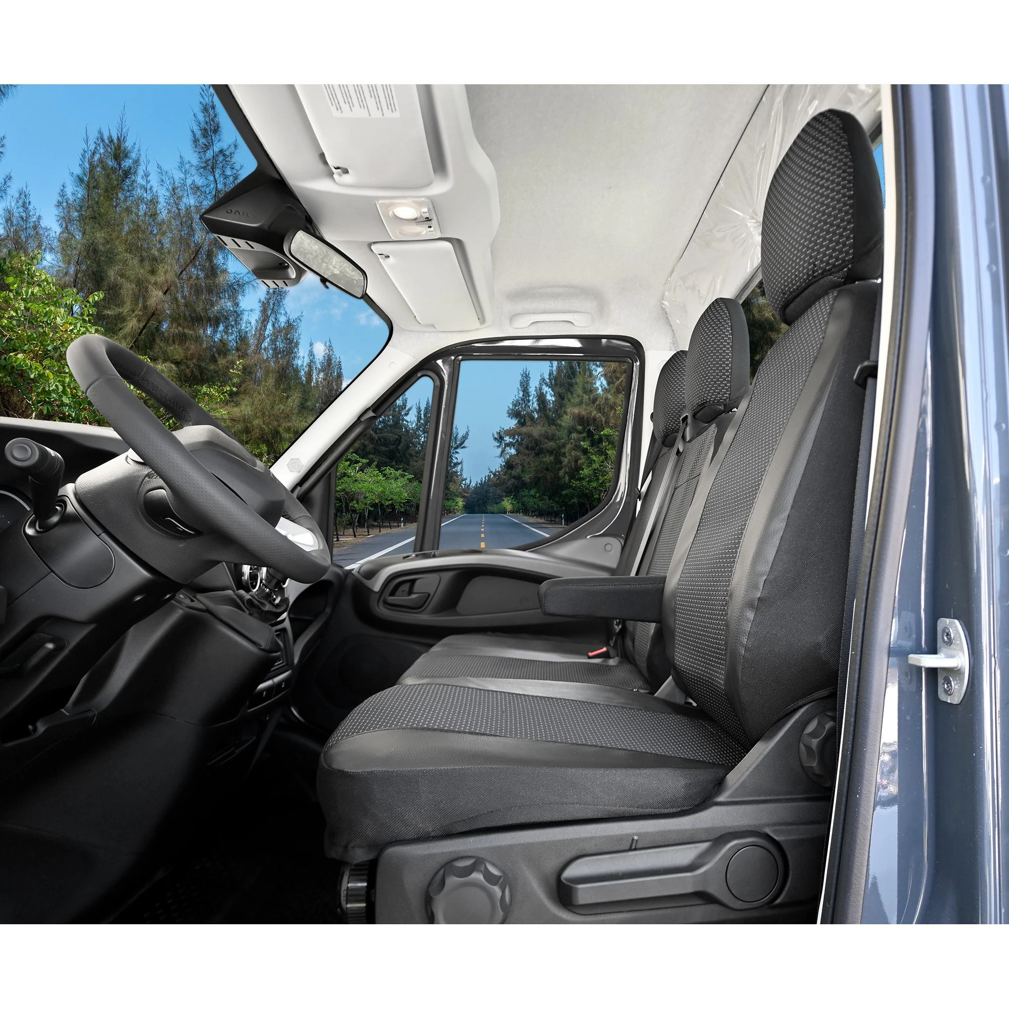 Pokrowce do Iveco Daily VI od 2014 / 2019 / 2024 - 3 miejsca CAŁE OPARCIE ZE STOLIKIEM, DZIELONE SIEDZISKO | Seria VIVA