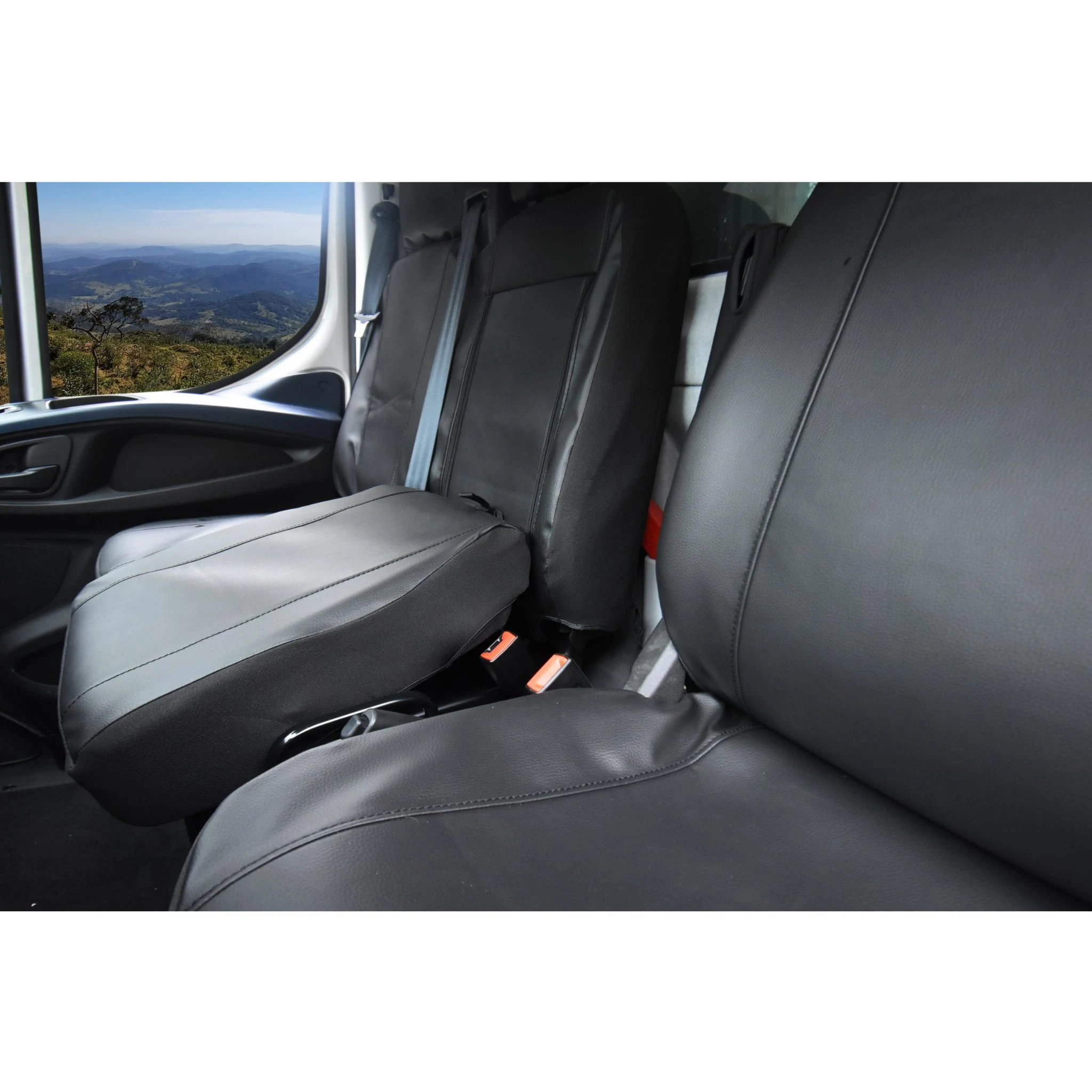 Pokrowce do Iveco Daily VI od 2014 / 2019 / 2024 - 7 miejsc - CAŁE OPARCIE ZE STOLIKIEM, DZIELONE SIEDZISKO | Seria MAISTER