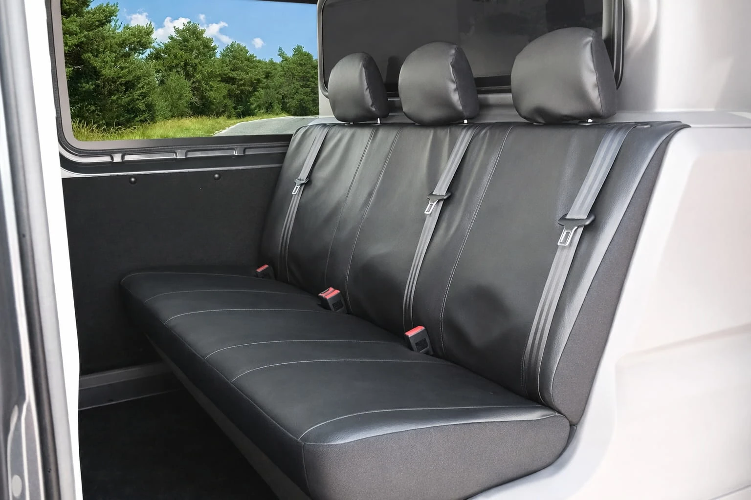 Linia MAISTER to synonim praktyczności i bezkompromisowej trwałości, stworzona z myślą o intensywnie eksploatowanych samochodach dostawczych. Te dopasowane pokrowce zostały zaprojektowane specjalnie dla modelu MAN TGE Kasten (od 2017) w konfiguracji 3-miejscowej dla rzędów pasażerskich. Wykonanie w całości z wysokiej jakości czarnej eko skóry sprawia, że wnętrze pojazdu zyskuje profesjonalny wygląd, a oryginalna tapicerka pozostaje pod pełną ochroną przed zabrudzeniami i przetarciami.