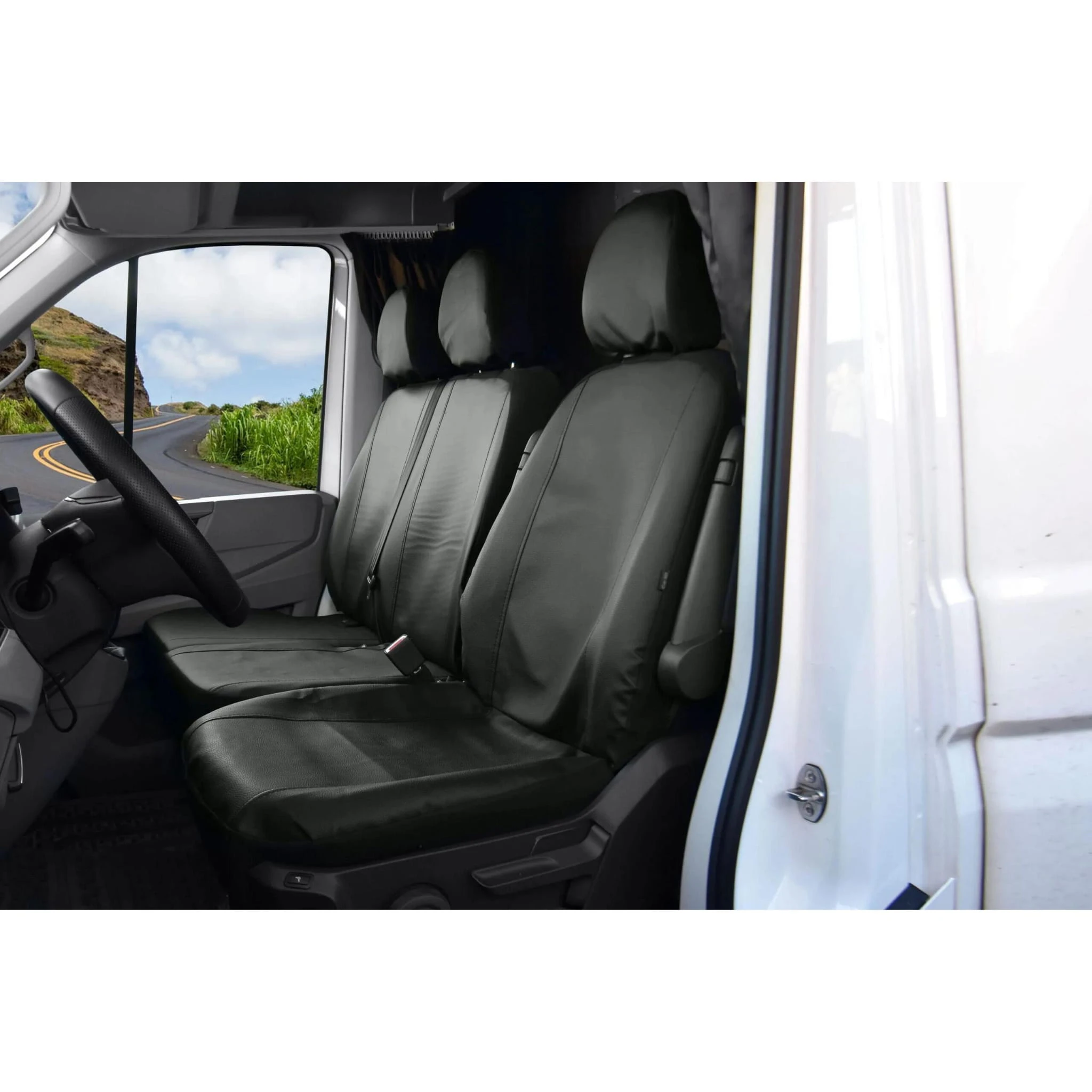 - 1x pokrowiec na oparcie fotela kierowcy (z otworami na 2 podłokietniki)