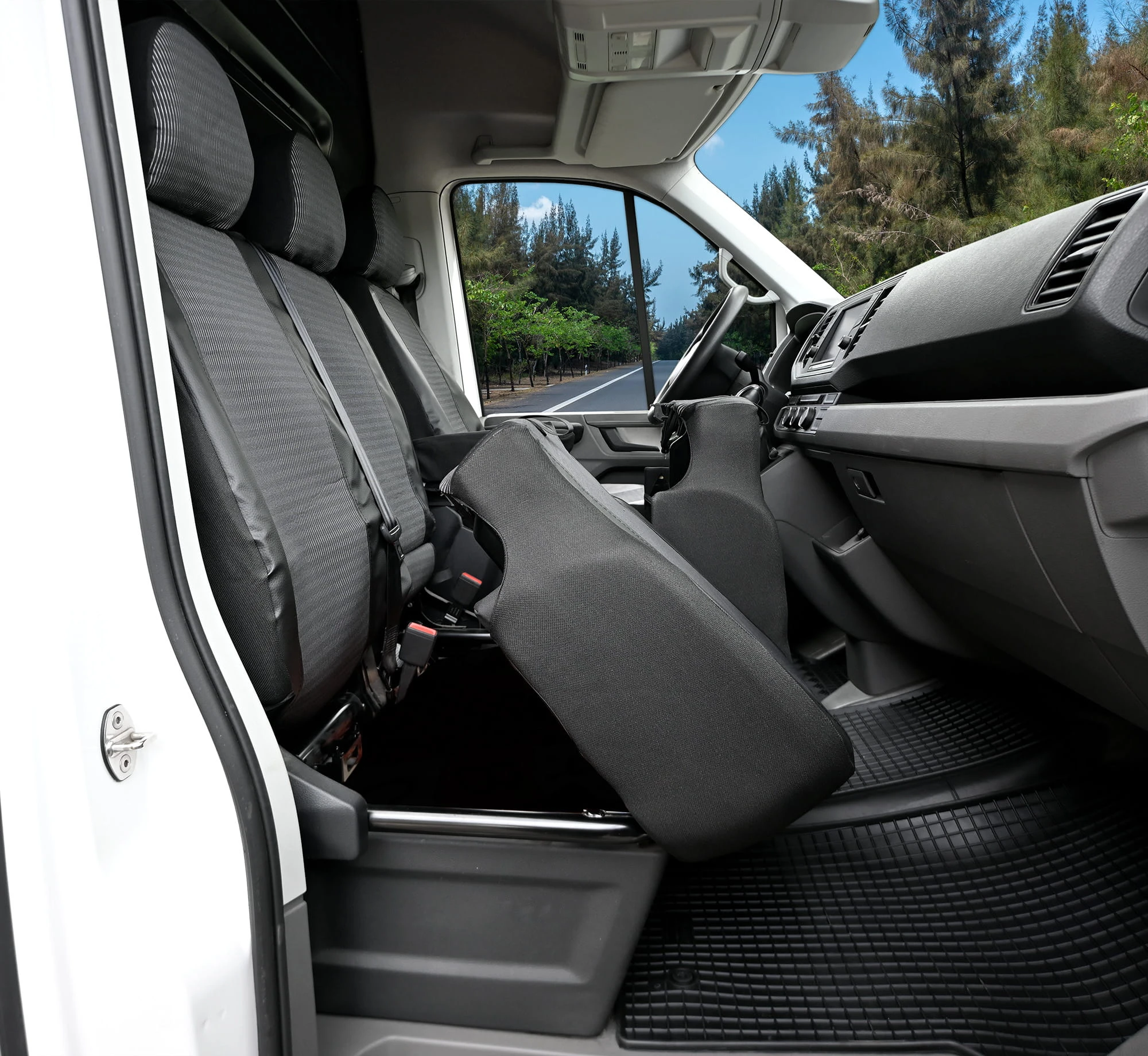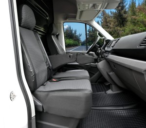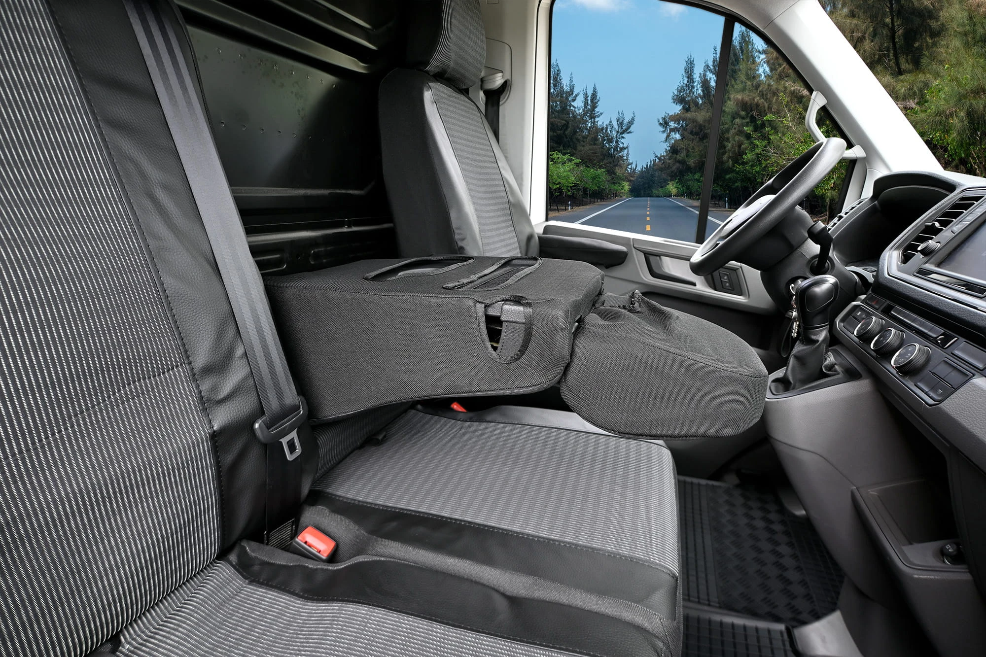 - 1x pokrowiec na oparcie kanapy pasażera (z elementem na składany stolik)