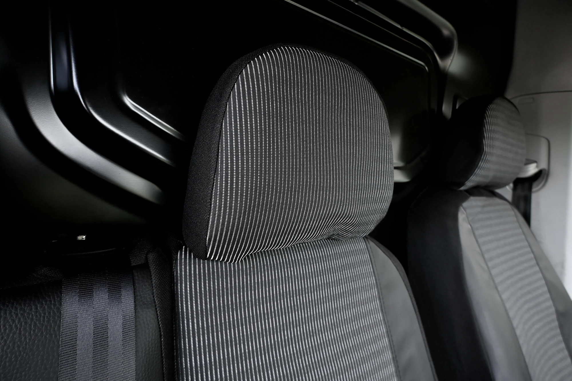 Linia VIVA to nowoczesne połączenie stylu i funkcjonalności, stworzone dla użytkowników samochodów dostawczych, którzy cenią sobie estetykę oraz wysoką jakość wykończenia. Te dedykowane pokrowce zostały zaprojektowane specjalnie dla modelu MAN TGE (produkcja 2017–2024) w układzie siedzeń 1+2. Dzięki połączeniu czarnej eko skóry na bokach i wytrzymałej szarej tkaniny w części centralnej, Twoja kabina zyska profesjonalny wygląd, przypominający wnętrza aut wystawowych.