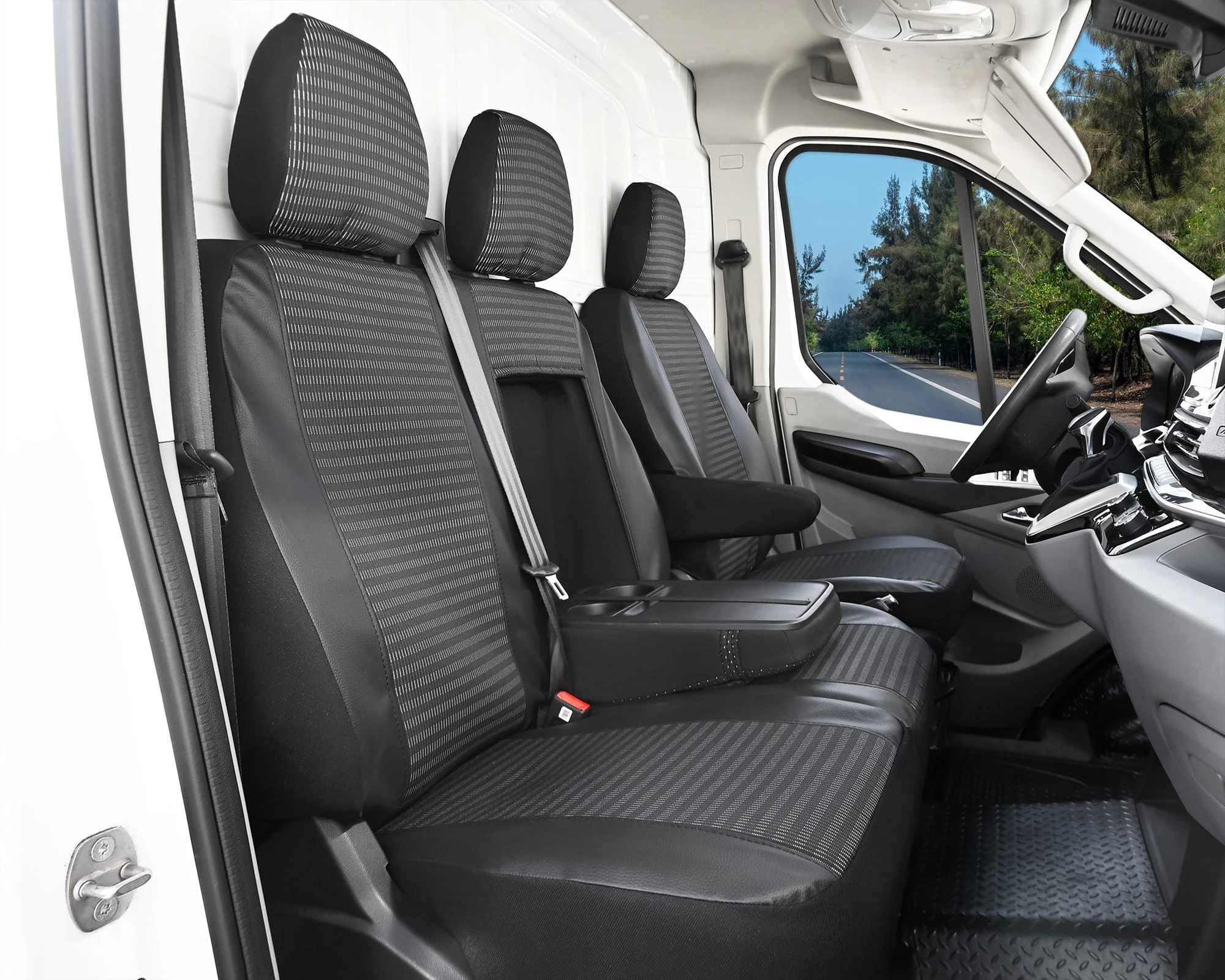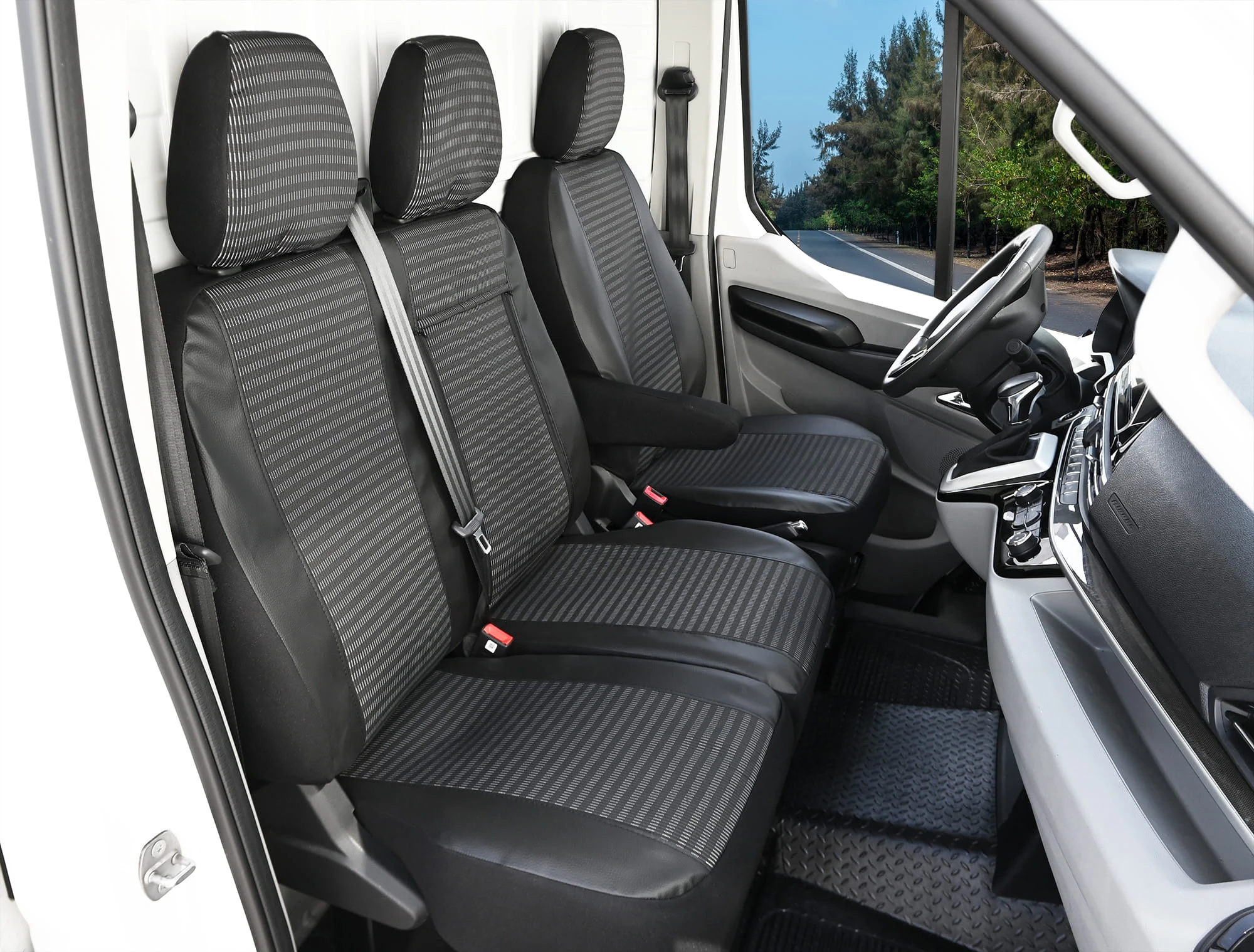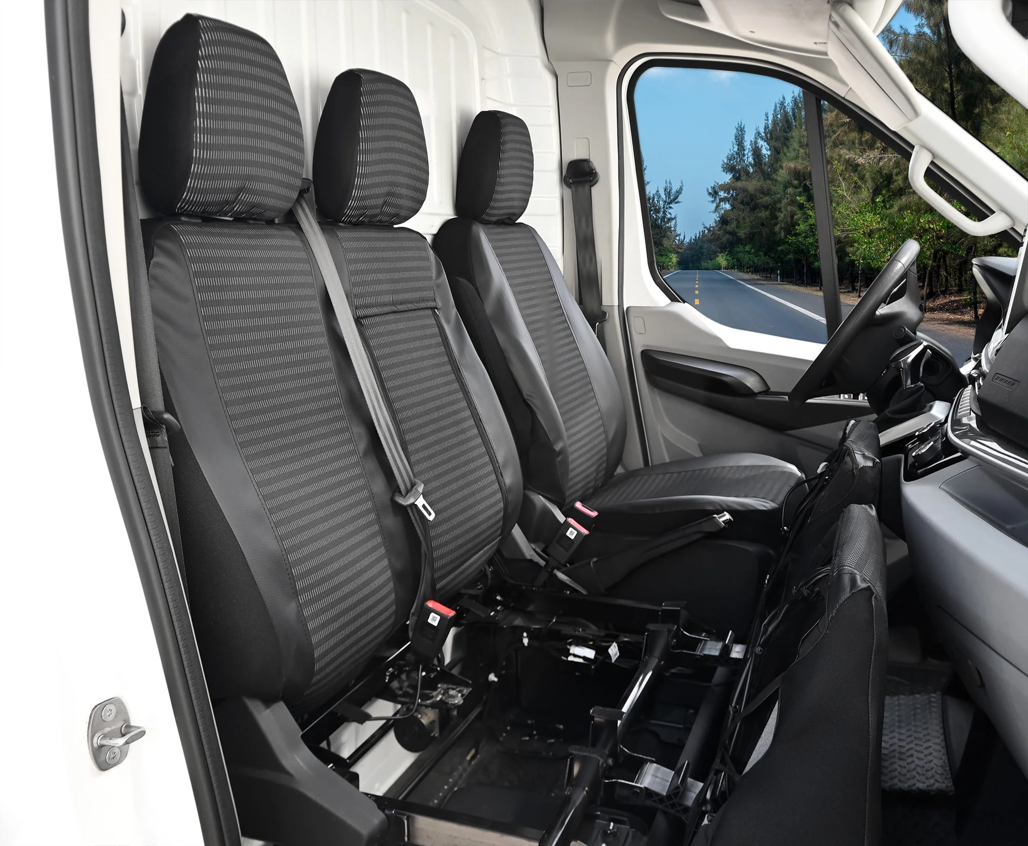 Odśwież wnętrze swojego Maxusa Deliver 7 i zapewnij mu ochronę na najwyższym poziomie dzięki pokrowcom na siedzenia z serii VIVA. Zaprojektowane z myślą o profesjonalistach, łączą nowoczesny styl z wyjątkową funkcjonalnością. Wykonanie z czarnej eko-skóry na bokach oraz wytrzymałej szarej tkaniny w części centralnej nadaje kabinie estetykę pojazdu wystawowego, jednocześnie chroniąc oryginalną tapicerkę przed trudami codziennej pracy.