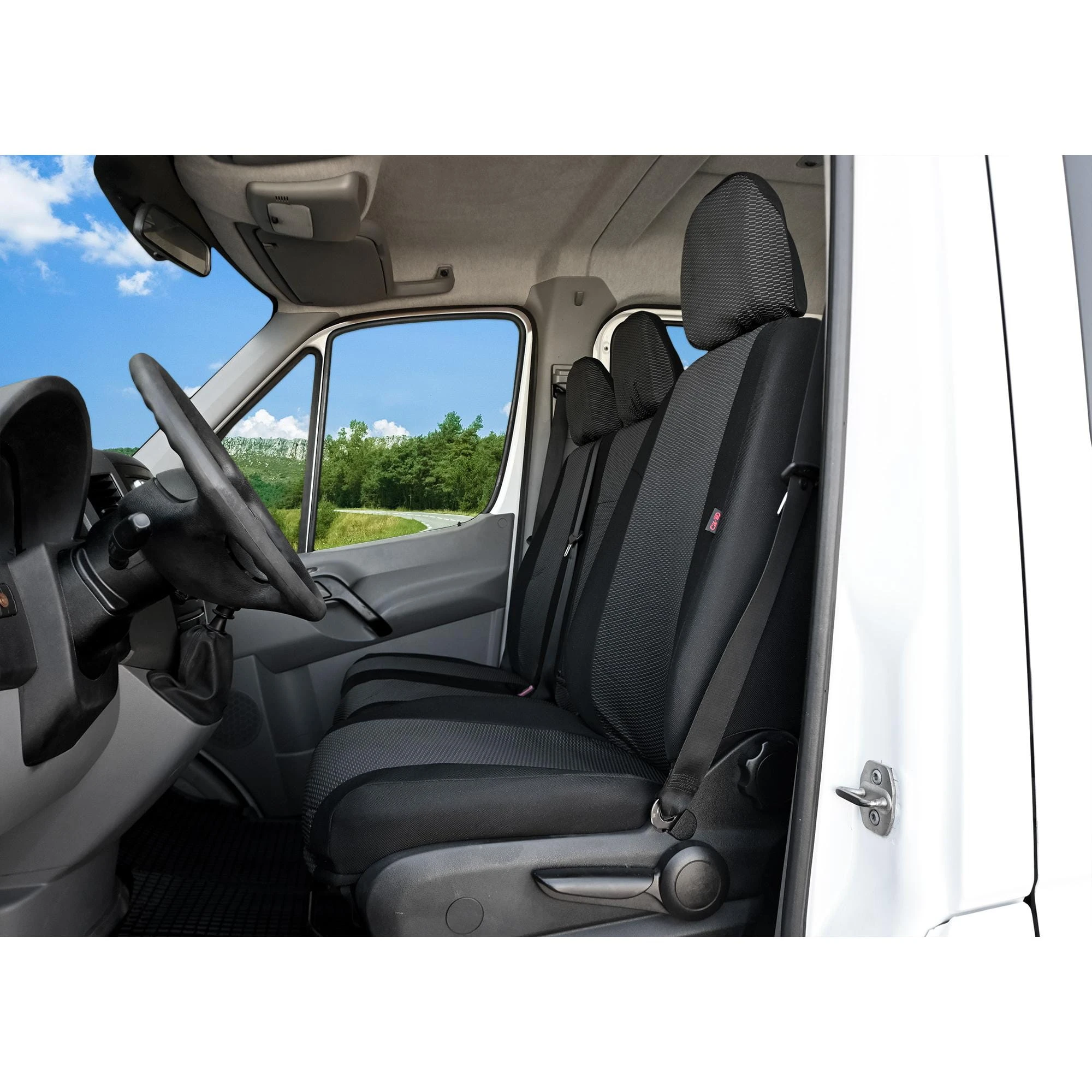 Pokrowce do Mercedes Sprinter II W906 od 2006 do 2018 - 7 miejsc PRZEDNIE FOTELE CAŁE OPARCIE ZE STOLIKIEM, CAŁE SIEDZISKO | Seria HERO