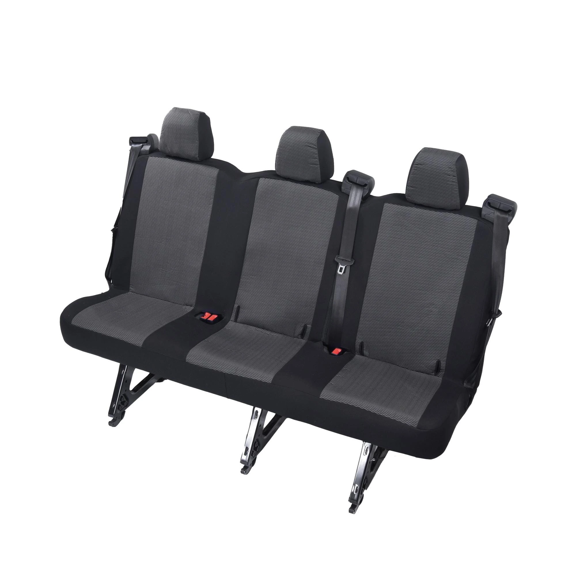- Drugi rząd (3 miejsca): Dedykowany pokrowiec na 3-osobową tylną kanapę, posiadający 3 otwory na pasy bezpieczeństwa.
