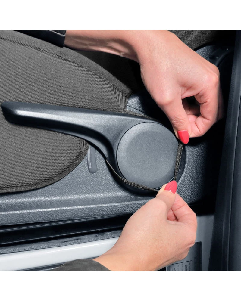 - Łatwy montaż: Intuicyjny system montażu umożliwia szybkie i bezproblemowe założenie pokrowców na fotele za pomocą gumek i haczyków.