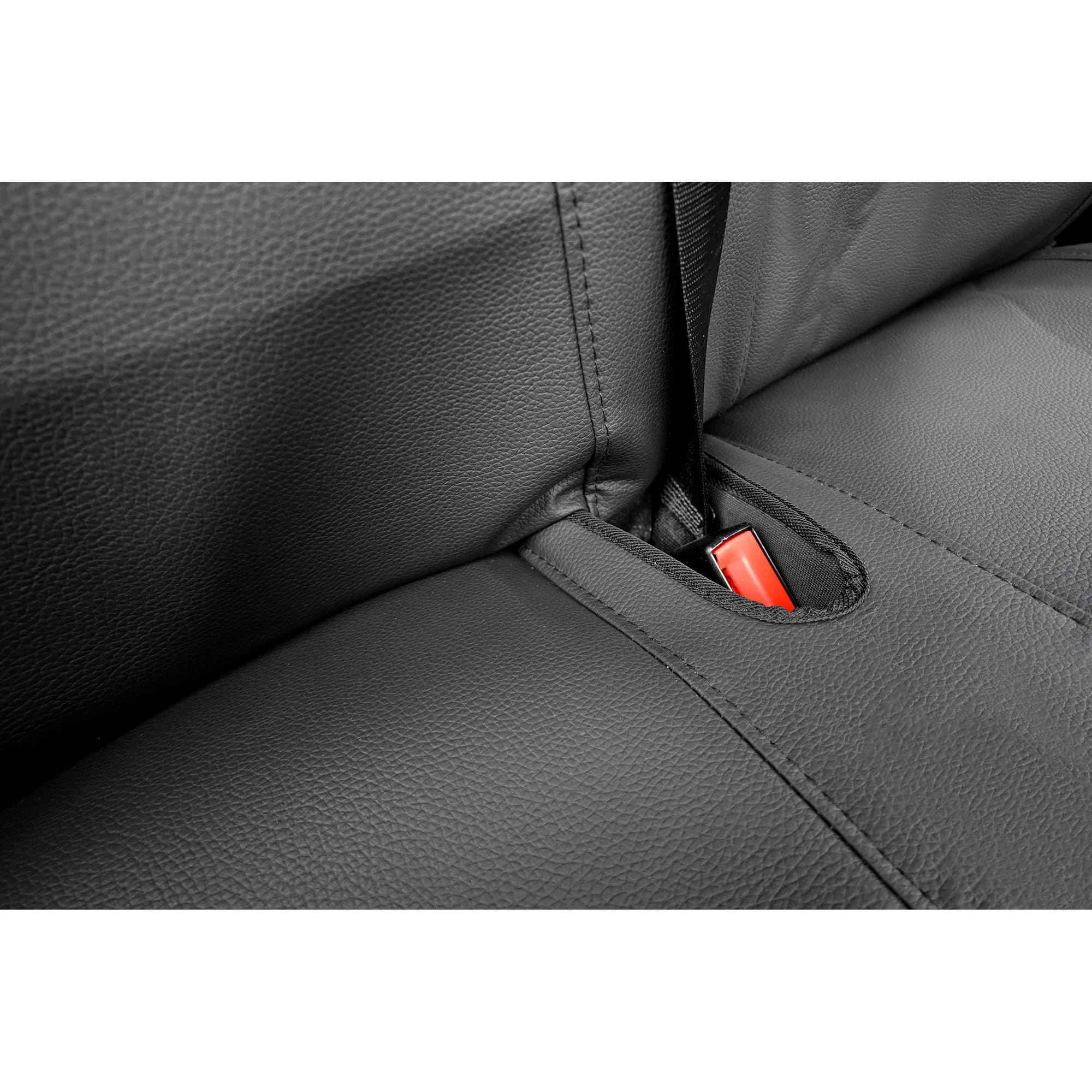 Materiał pokrowców charakteryzuje się pełną wodoodpornością i jest niezwykle łatwy w utrzymaniu czystości – większość zabrudzeń usuniesz błyskawicznie przy pomocy wilgotnej ściereczki. Dzięki wzmocnionemu spodowi oraz precyzyjnemu krojowi, pokrowce idealnie przylegają do kształtu foteli, nie przesuwając się podczas wsiadania i wysiadania.