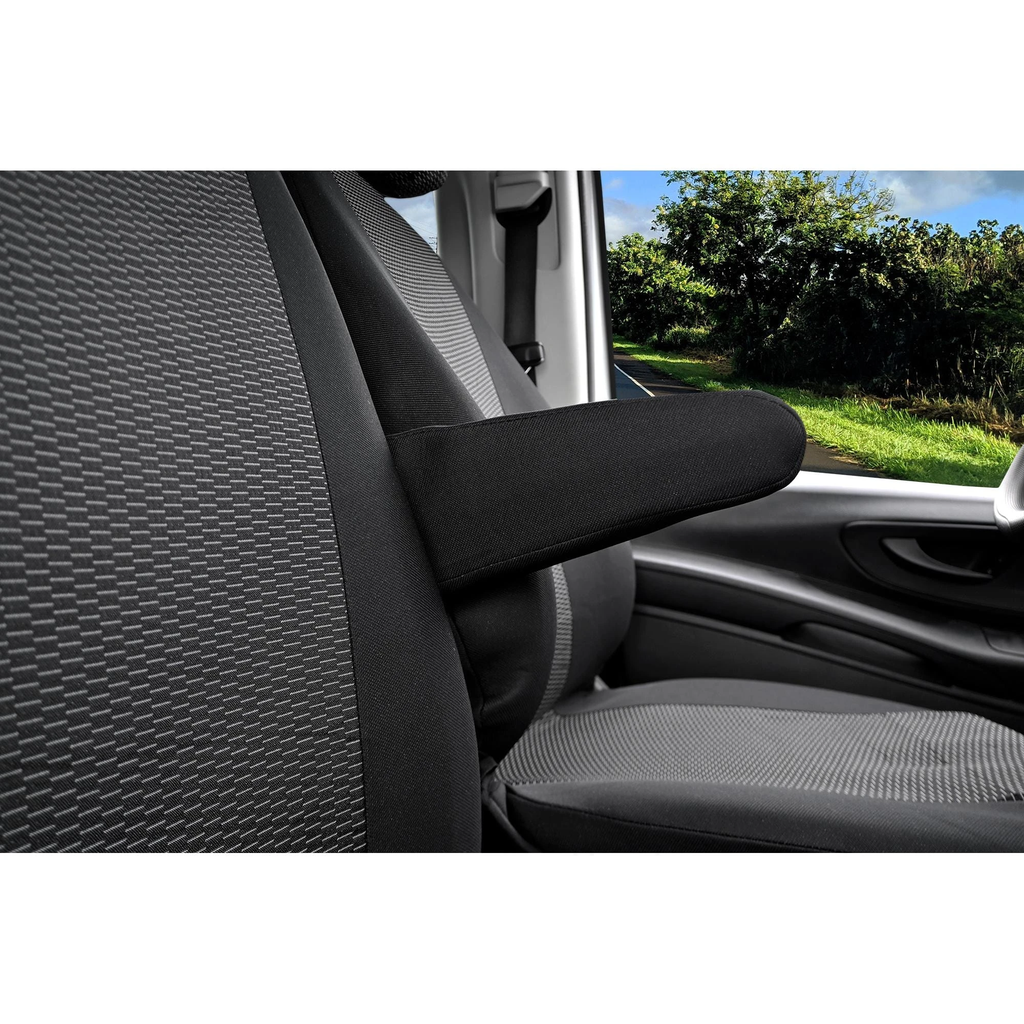 - Podłokietniki: Zestaw zawiera 2 pokrowce na podłokietniki (dla kierowcy i pasażera).