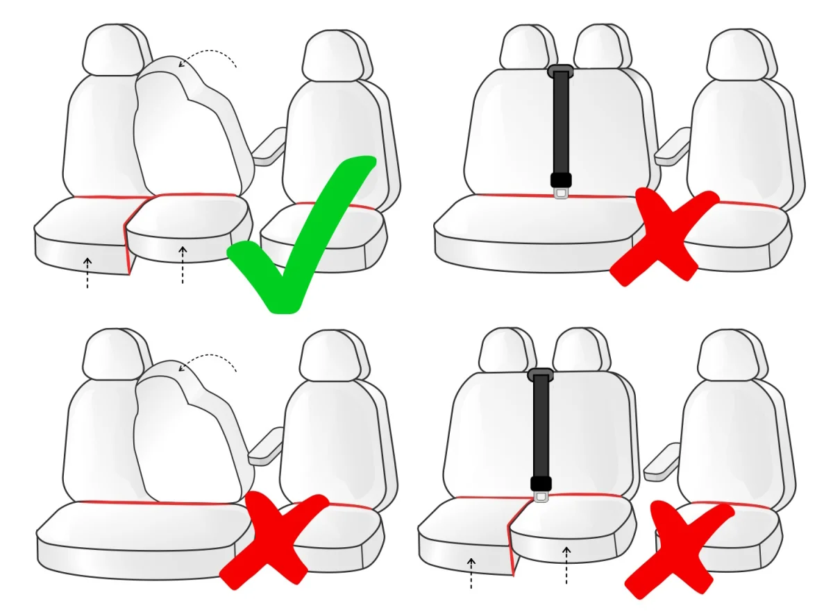 - Konfiguracja 1+2 (Siedzisko dzielone): Przystosowane do wersji z dzielonym siedziskiem pasażera, co umożliwia swobodny dostęp do fabrycznych schowków pod fotelami.