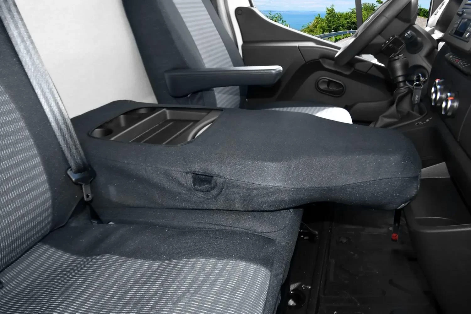 - Układ 3-miejscowy (1+2): Przystosowane do wersji z dzielonym siedzeniem pasażera i dostępem do schowków.