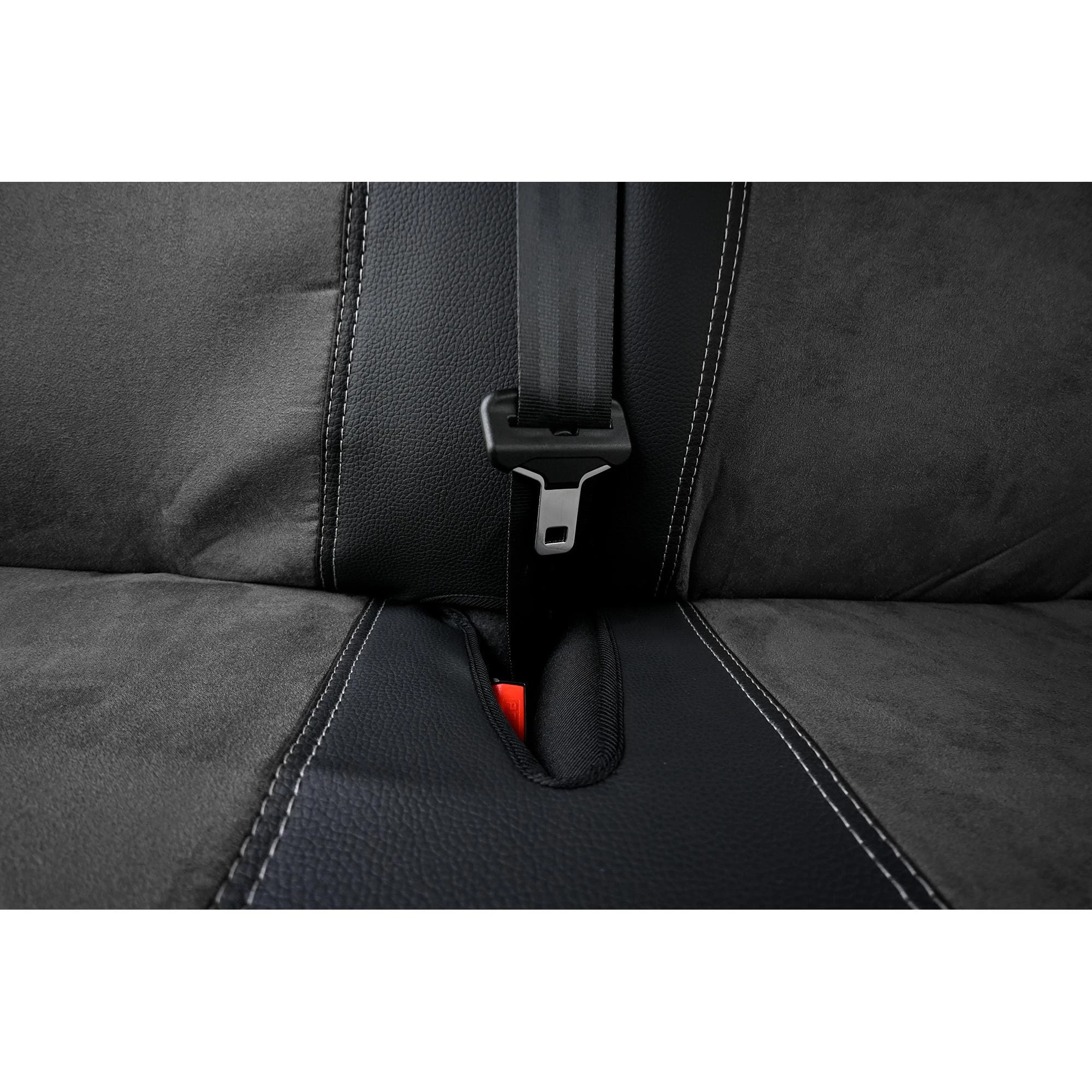 Linia TALENT to propozycja dla profesjonalistów, którzy oczekują od wnętrza swojego vana zarówno sportowego sznytu, jak i bezkompromisowej wytrzymałości. Pokrowce te wyróżniają się unikalnym połączeniem czarnej eco-skóry na bokach z szarym, oddychającym zamszem w części środkowej. Całość została zwieńczona dynamicznym akcentem w postaci czerwonych szwów, co nadaje kabinie nowoczesny i prestiżowy wygląd.