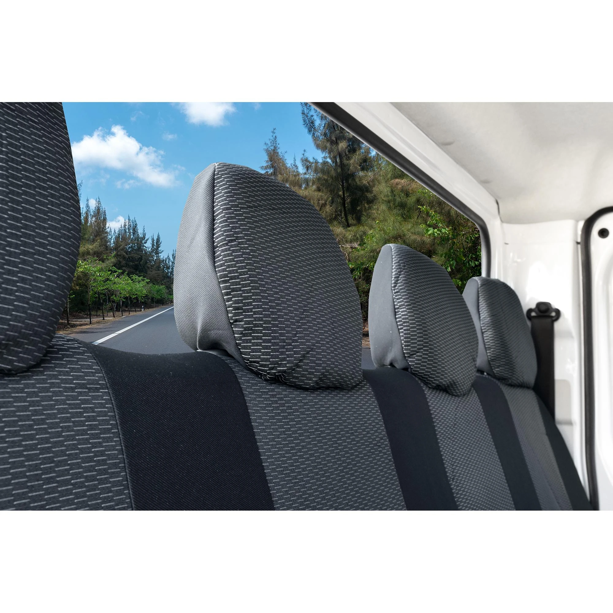 - Oddychająca struktura: Zapewnia komfort termiczny nawet przy pełnym obłożeniu pojazdu.
