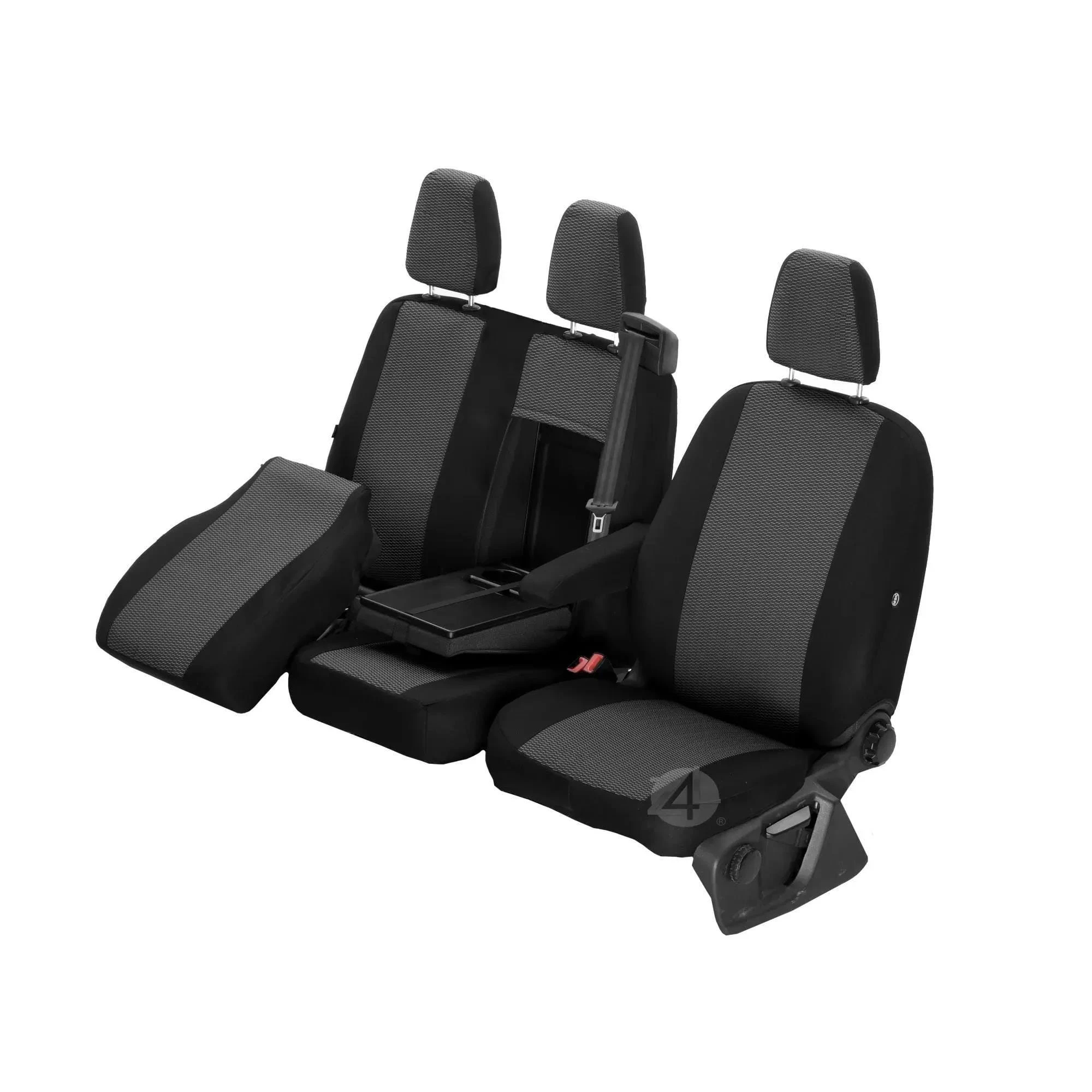 - Kompatybilność z podłokietnikiem: Pokrowiec fotela kierowcy posiada przygotowane miejsce na jeden fabryczny podłokietnik.