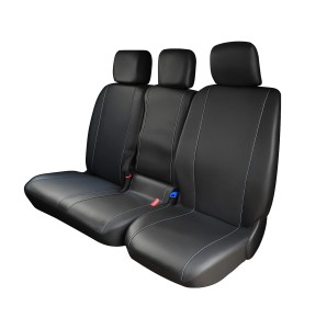 Zestaw dedykowany dla 3-osobowych wersji dostawczych. Zawiera pokrowiec na fotel kierowcy z otworem na pokrętło lędźwiowe oraz osłony na podwójny fotel pasażera (2 oparcia + 2 siedziska). Konstrukcja nie blokuje funkcji podnoszenia siedzisk.