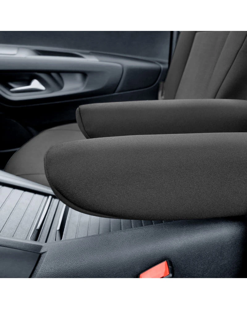 - 2x pokrowce na przednie fotele (pokrowce przystosowane do podłokietników zamontowanych w bocznych częściach oparcia oraz do stolików w tylnej części oparcia)