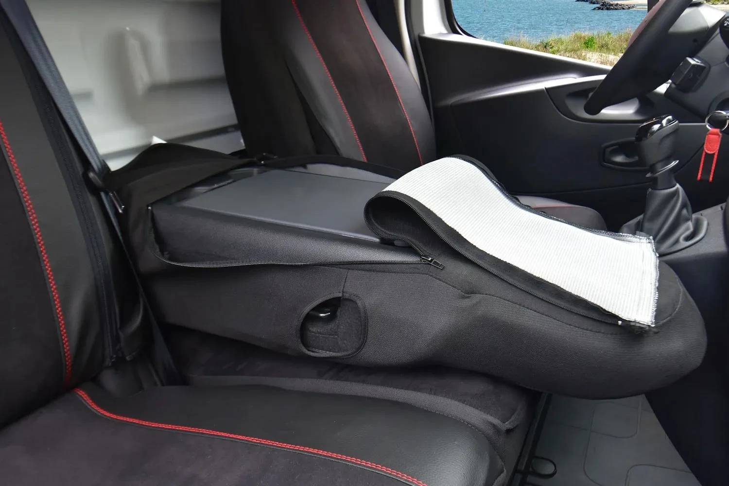 - Dostęp do schowków: System dzielonego siedziska pozwala na swobodne korzystanie z przestrzeni bagażowej pod fotelem pasażera.