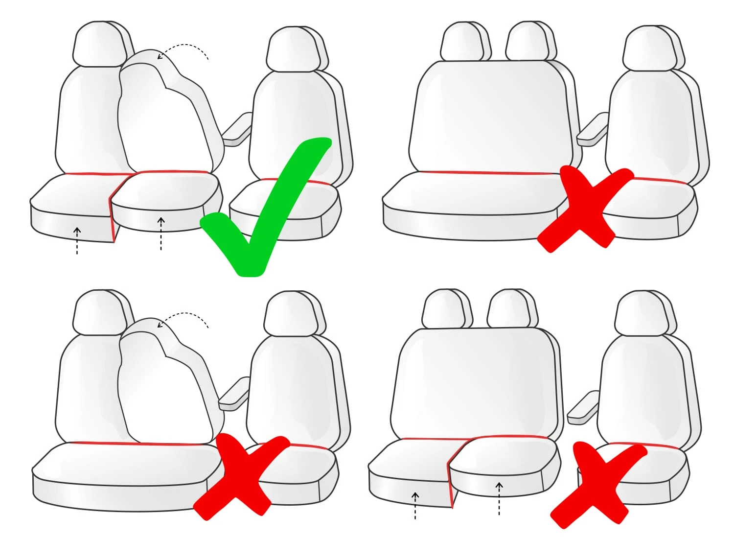 - Zagłówki: W zestawie znajdują się 2 pokrowce na zagłówki regulowane (kierowcy i pasażera zewnętrznego).